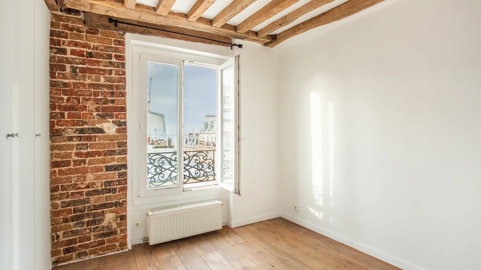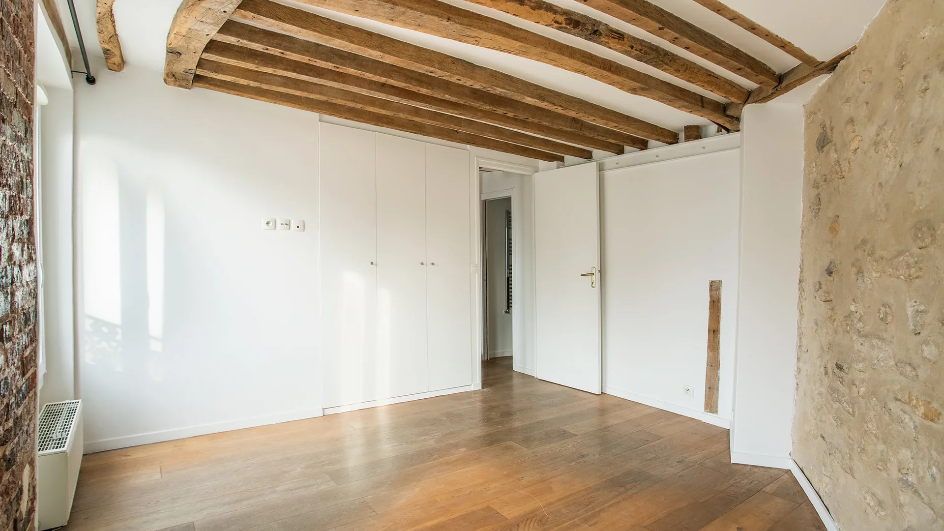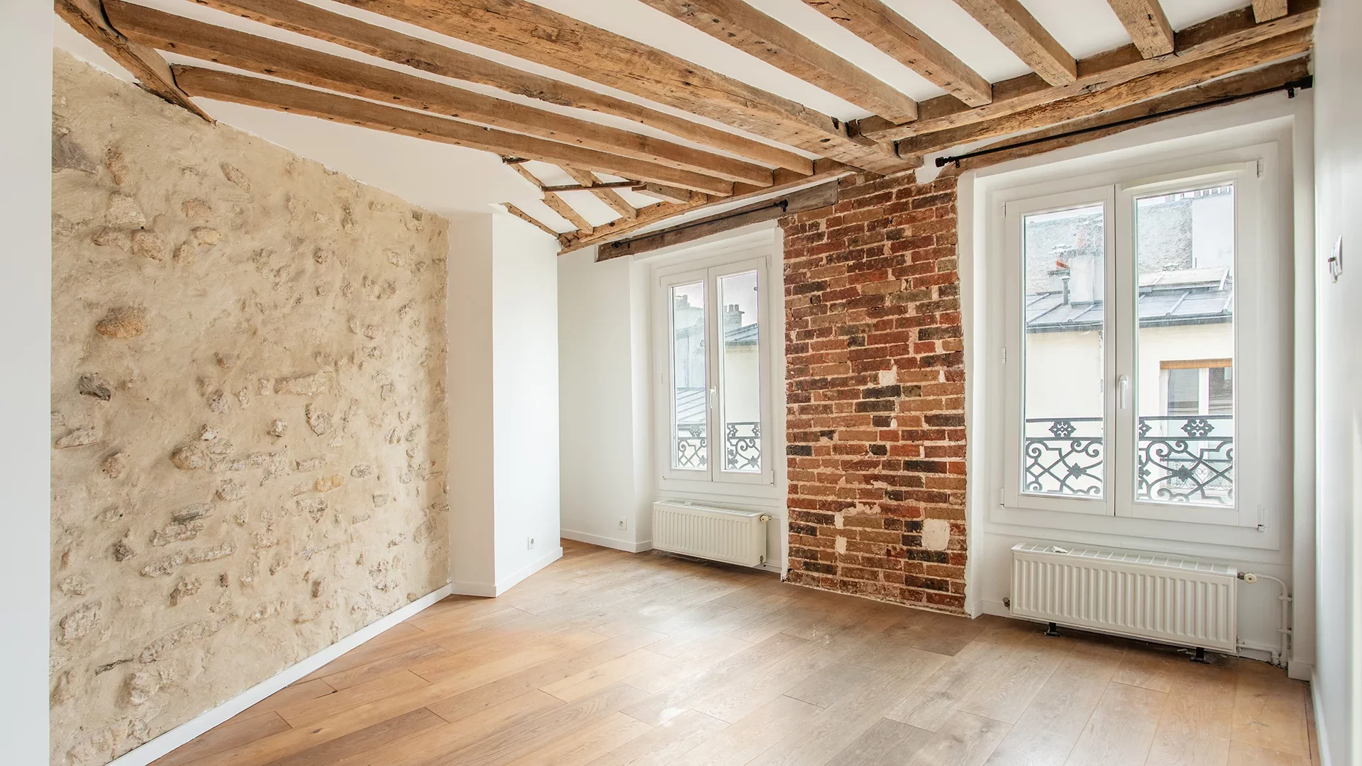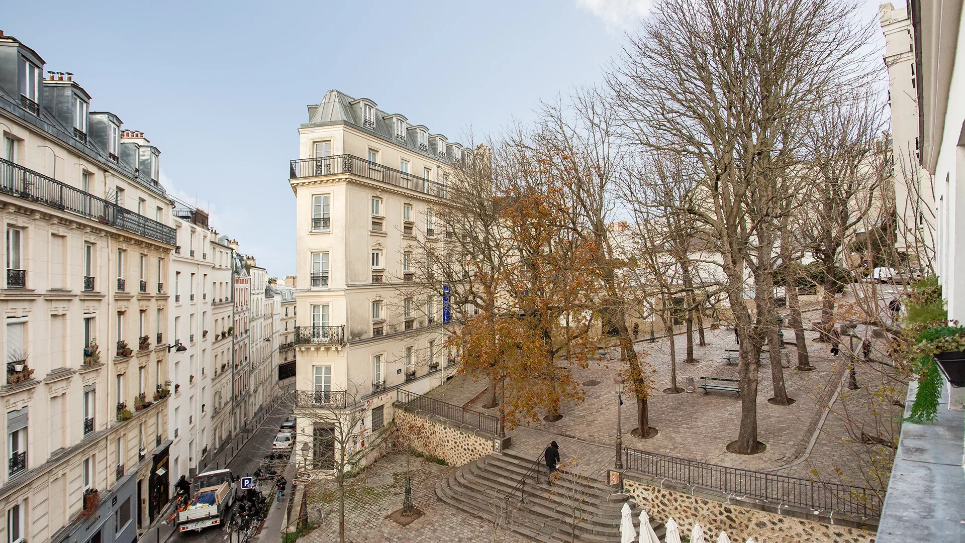 Empty three-room apartment ideally located a few steps from rue des Abbesses, its shops and transport: rue Ravignan. On the third floor by staircase of a pretty, well-maintained Montmartre building, this magnificent 53.17m² apartment has been renovated to a very high standard.