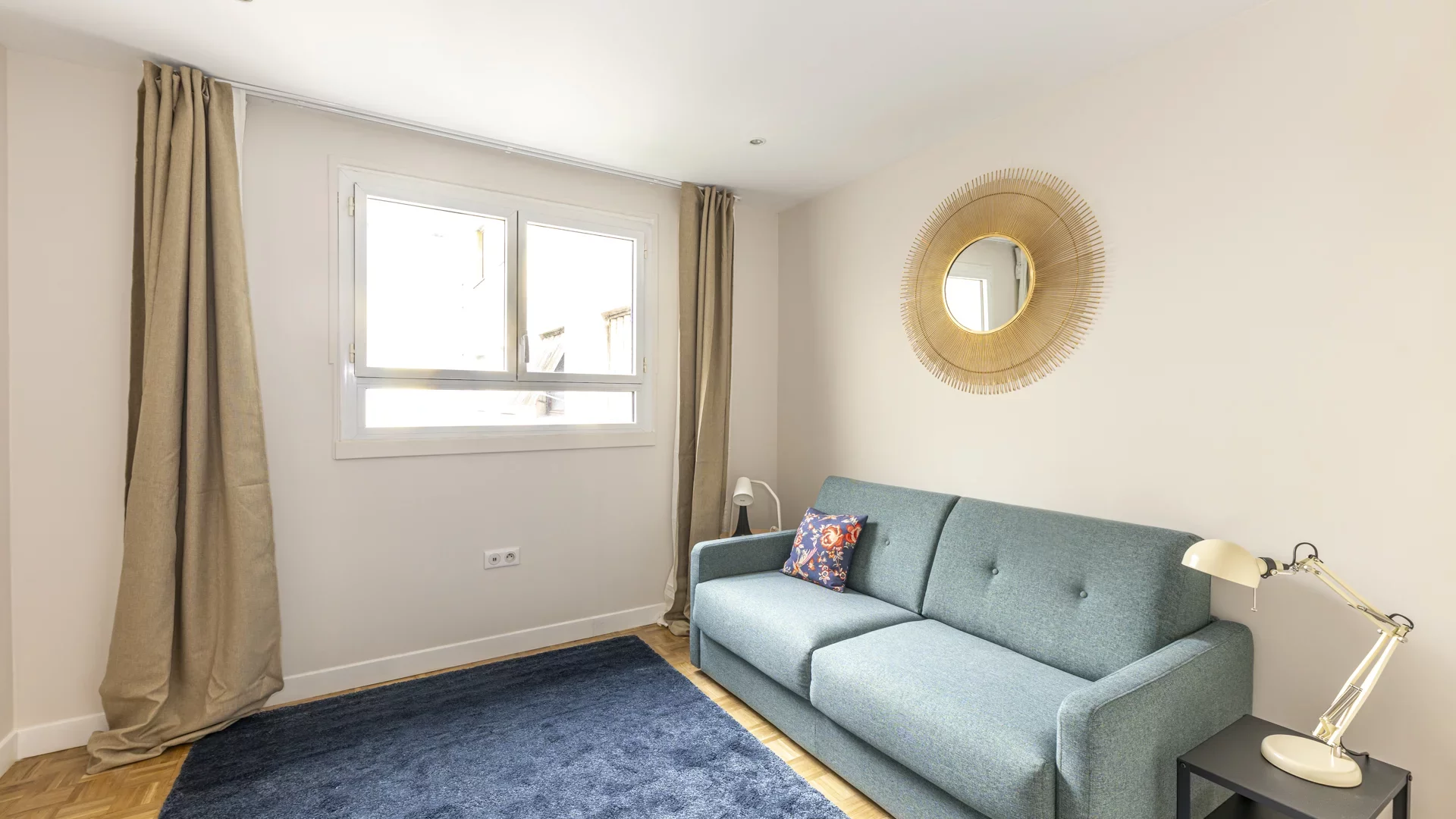 In the heart of Paris's 11th arrondissement, close to Place de la Bastille and Place des Vosges, but away from the hustle and bustle.