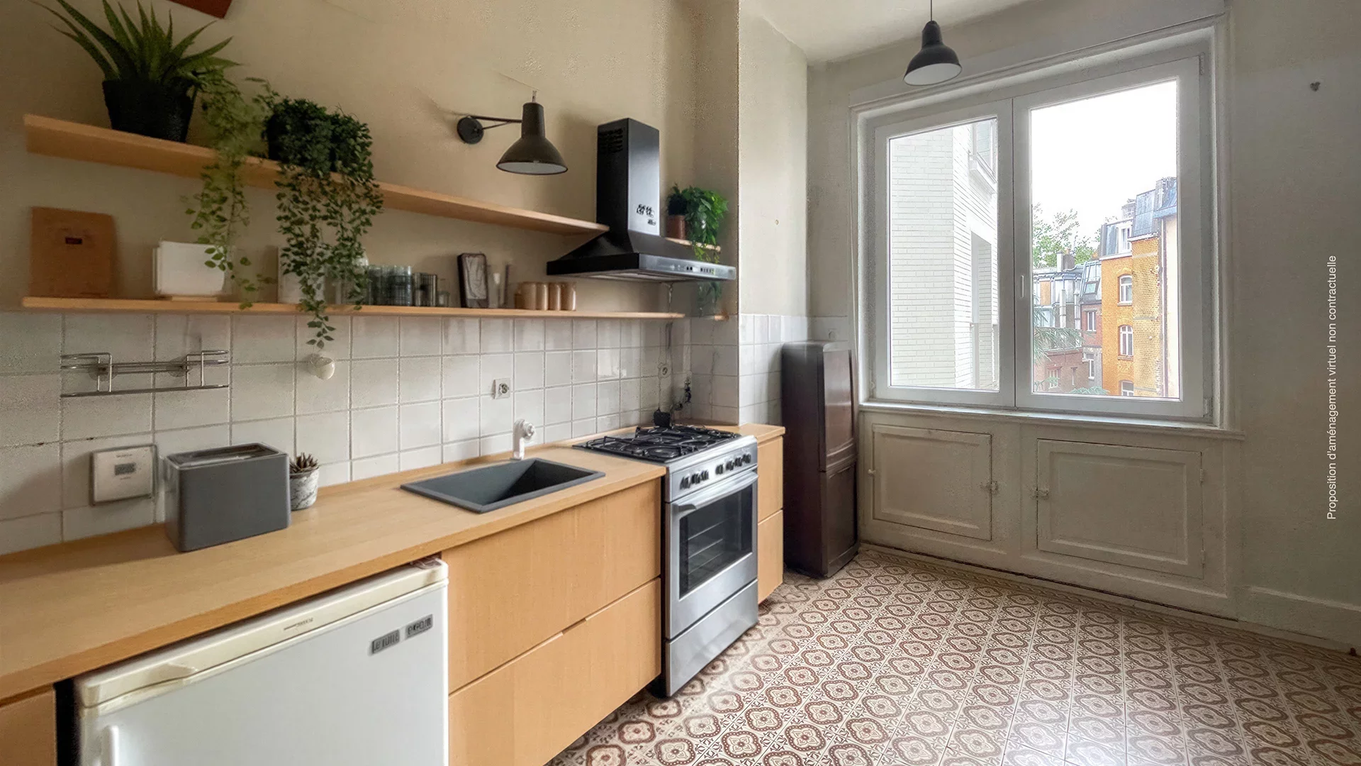 Luxury apartment of 208.68m² loi Carrez in a bourgeois building with elevator. You'll enter through a magnificent hall of over 20m&, with its high ceilings, moldings and parquet flooring, inviting you to join the double living room with its ready-to-use cachet. An office or possible living room will be at your disposal, as well as a large independent kitchen. The sleeping area comprises three large bedrooms, one of which is soundproofed, two bathrooms and two water points. A large dressing room, laundry room and two toilets complete this 3rd-floor apartment. A parking lot, with the possibility of a second one in addition, and two cellars are accessible from the building. All at walking distance from shops and Lille life.