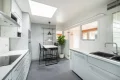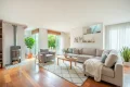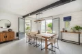 This house offers a utility room with storage and washbasin, a fitted kitchen opening onto the dining room. A living room with wood-burning stove opens onto the large south-facing terrace (40sqm), which extends into the sheltered garden.