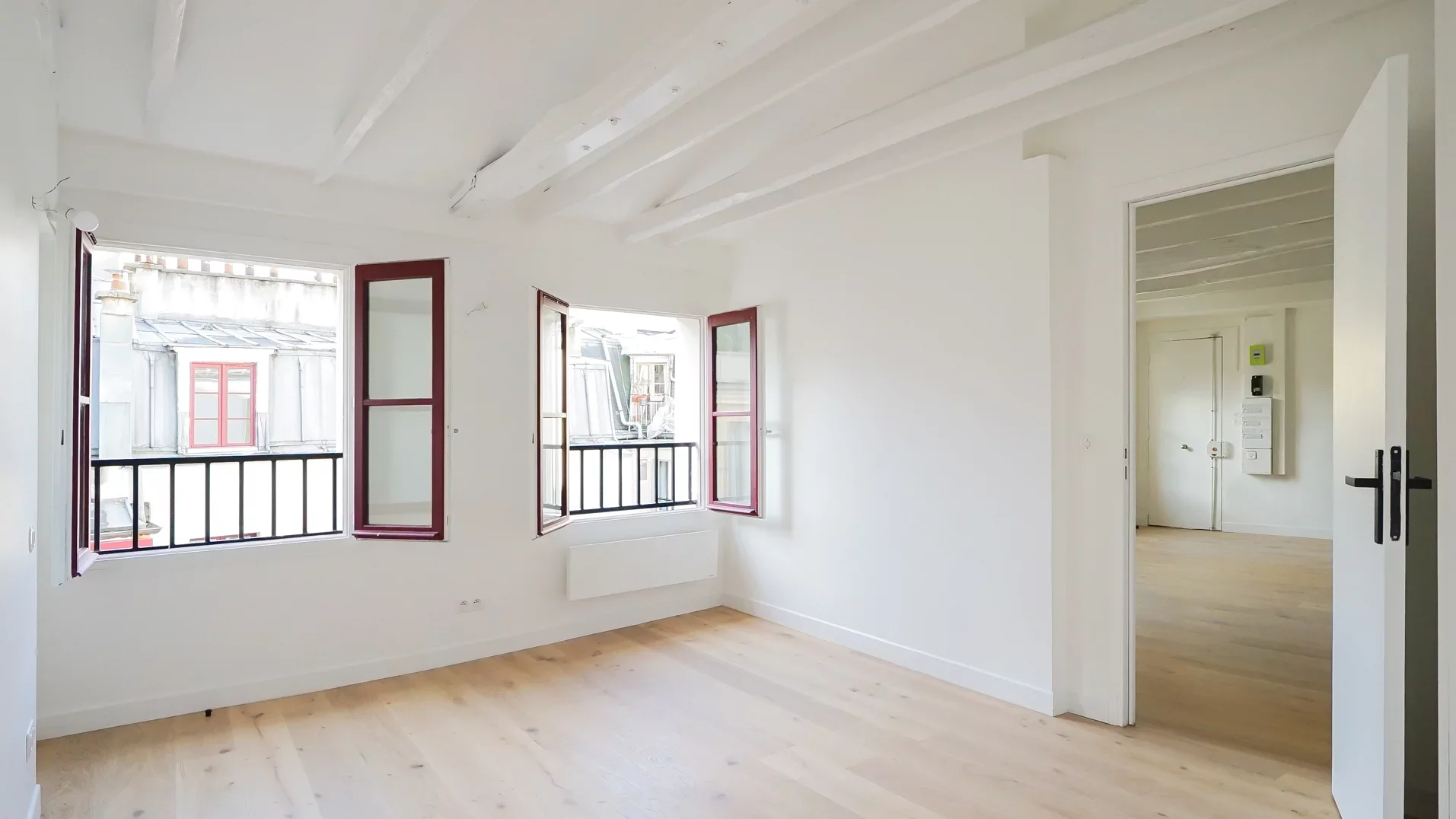 Ideally located in the heart of the historic Marais, in a beautiful 18th century building entirely renovated, on the sixth and last floor by elevator, a charming apartment with a surface area of 43.20sqm loi Carrez. Set in a quiet courtyard, it comprises a beautiful living room with two south-facing windows, an open-plan kitchen, a bedroom with dressing room, a shower room and a separate toilet. You'll love its exceptional location, compact floor plan with no loss of space and plenty of storage space, sunshine and high-quality features. A cellar completes this offer.