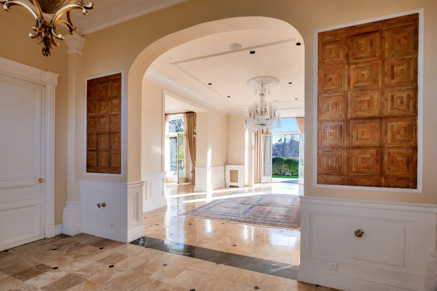 Upon entry, a vast 27sqm hall sets the tone with its 4m high ceilings. The first floor features a light-filled reception area of over 90sqm, opening onto an 80sqm south-facing terrace overlooking the garden and river. This level also includes an office with independent exterior access, a checkroom, a laundry room and other amenities.