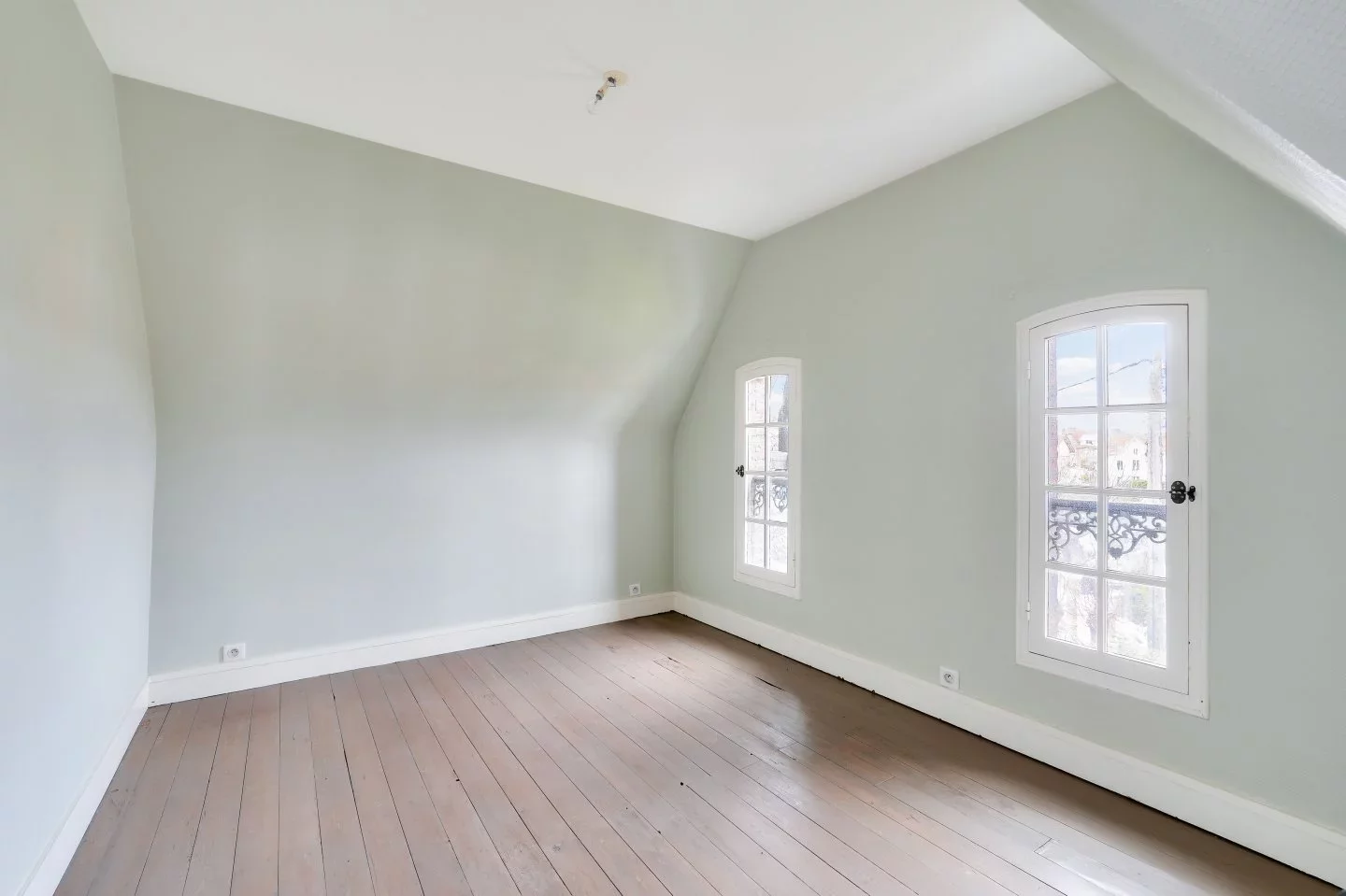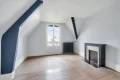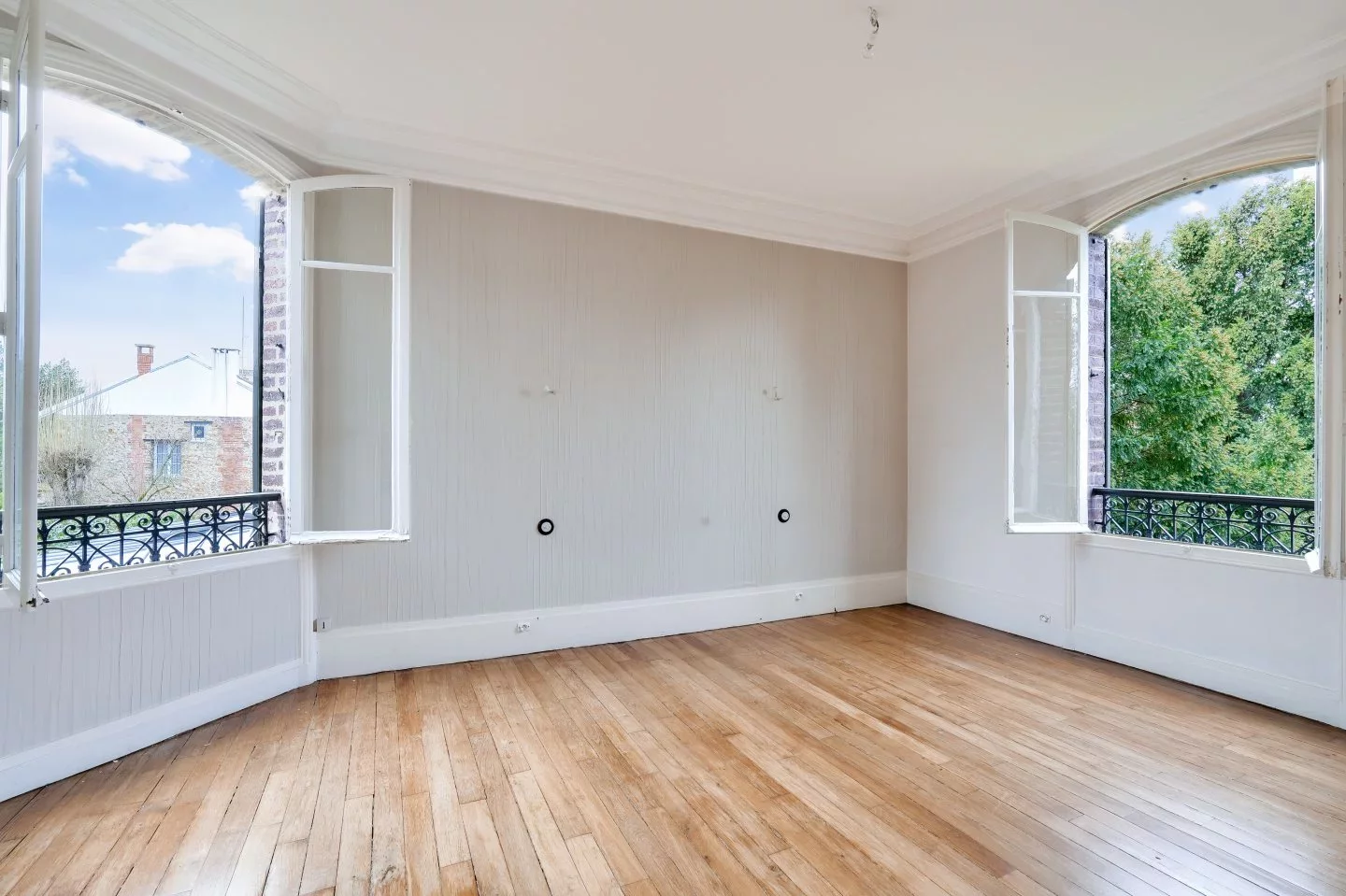 The vast reception room, bathed in light, reveals all the cachet of the old with its original parquet floors and superb windows opening onto a terrace and wooded garden. The separate kitchen has direct access to the outside.