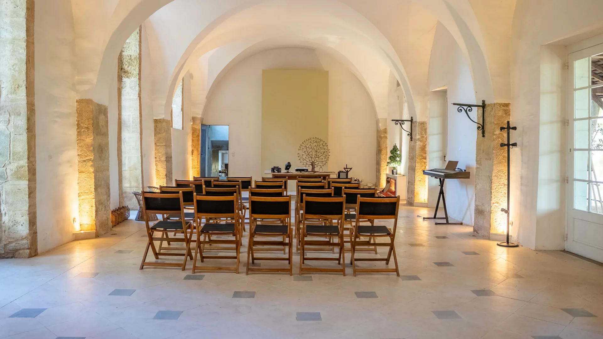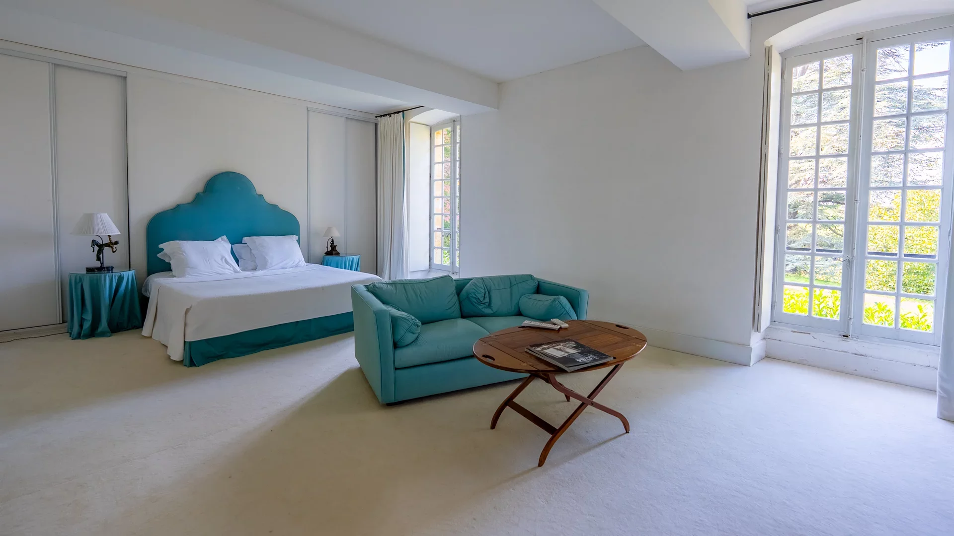 The 17th-century building, located south of the castle and completely redesigned, consists of a welcoming bar with a living room and fireplace, a functional kitchen, a large reception room with a groin-vaulted ceiling, leading to a covered terrace as well as a terrace with a heated pool and hammam. On the first level, there are two elegant suites and a bedroom with a bathroom. On the second level, a large meeting room, three bedrooms with bathrooms, a three-room apartment, and an attic.
