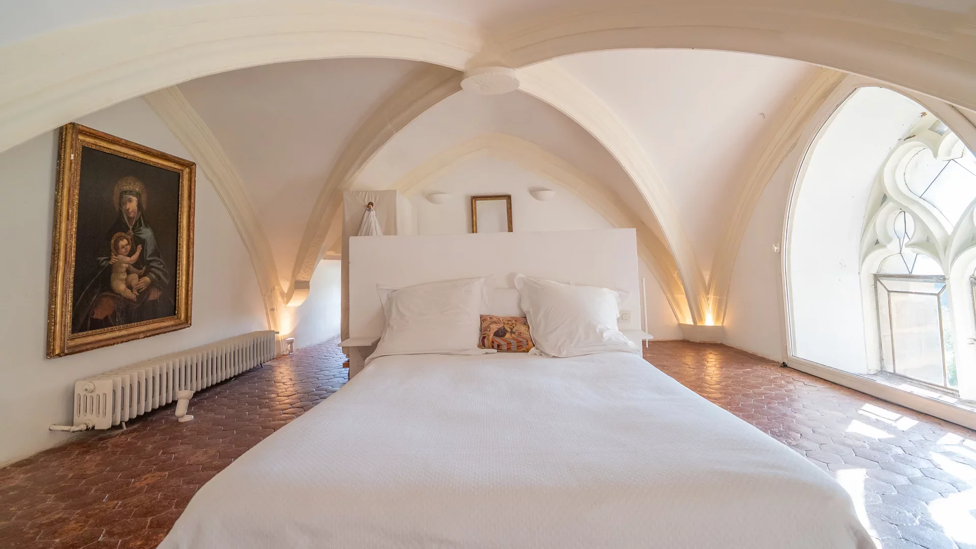 All the rooms have retained beautiful architectural elements, with barrel-vaulted ceilings or painted French ceilings. Some walls are adorned with woodwork and decorative motifs that complement the classic atmosphere. The floors are adorned with large stone tiles or parquet.