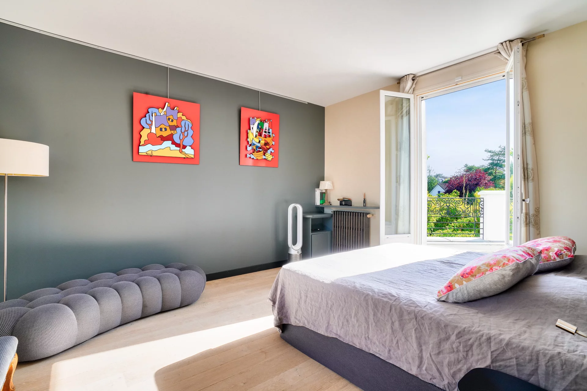 Upstairs, the sleeping area boasts high ceilings, three bedrooms, two shower rooms, a laundry room and a large master suite with dressing room and bathroom, with direct access to a magnificent terrace overlooking the garden.