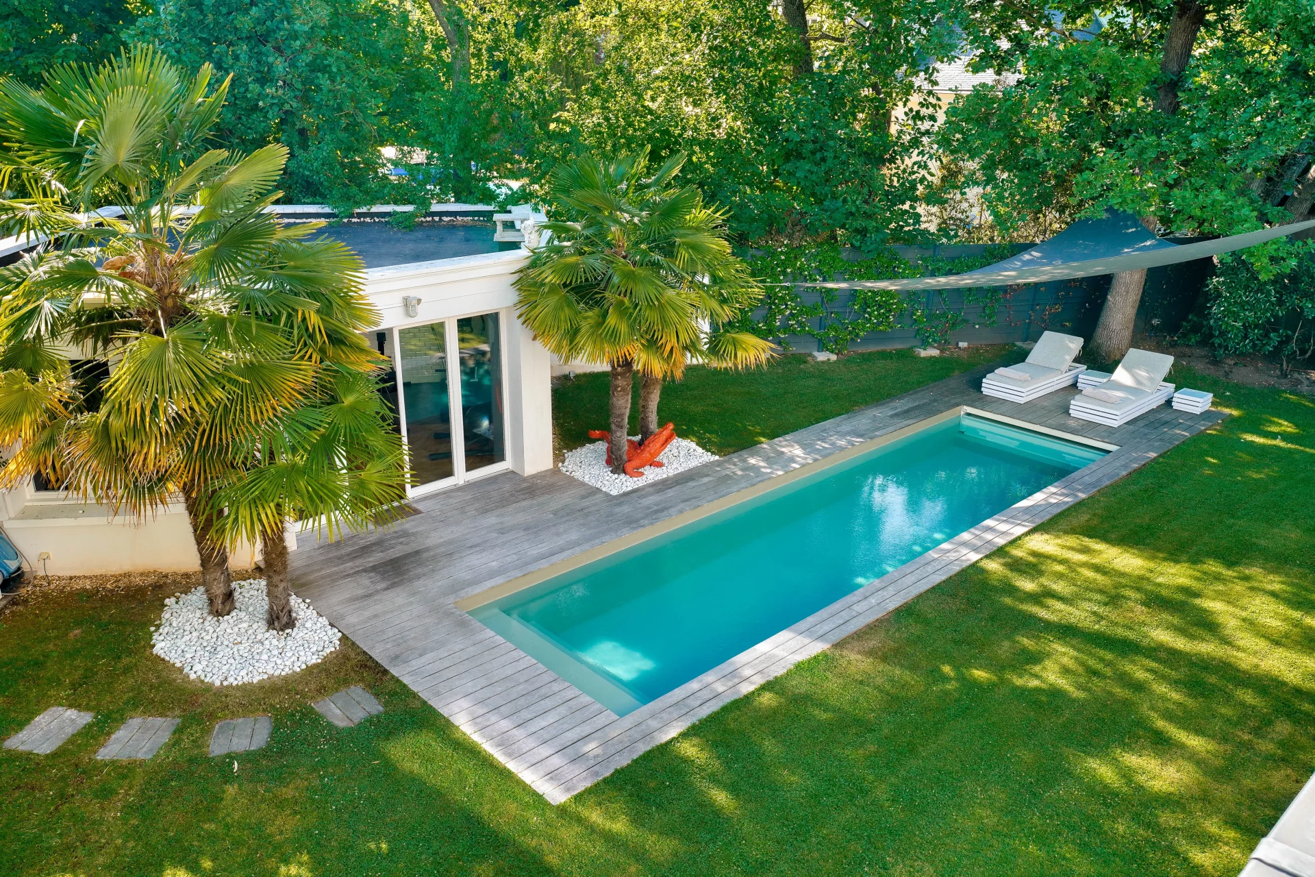 This property is nestled in the heart of a superb 1800sqm English-style landscaped garden. Built around 1900, it has benefited from two perfectly integrated extensions, respecting the original architecture and noble materials.