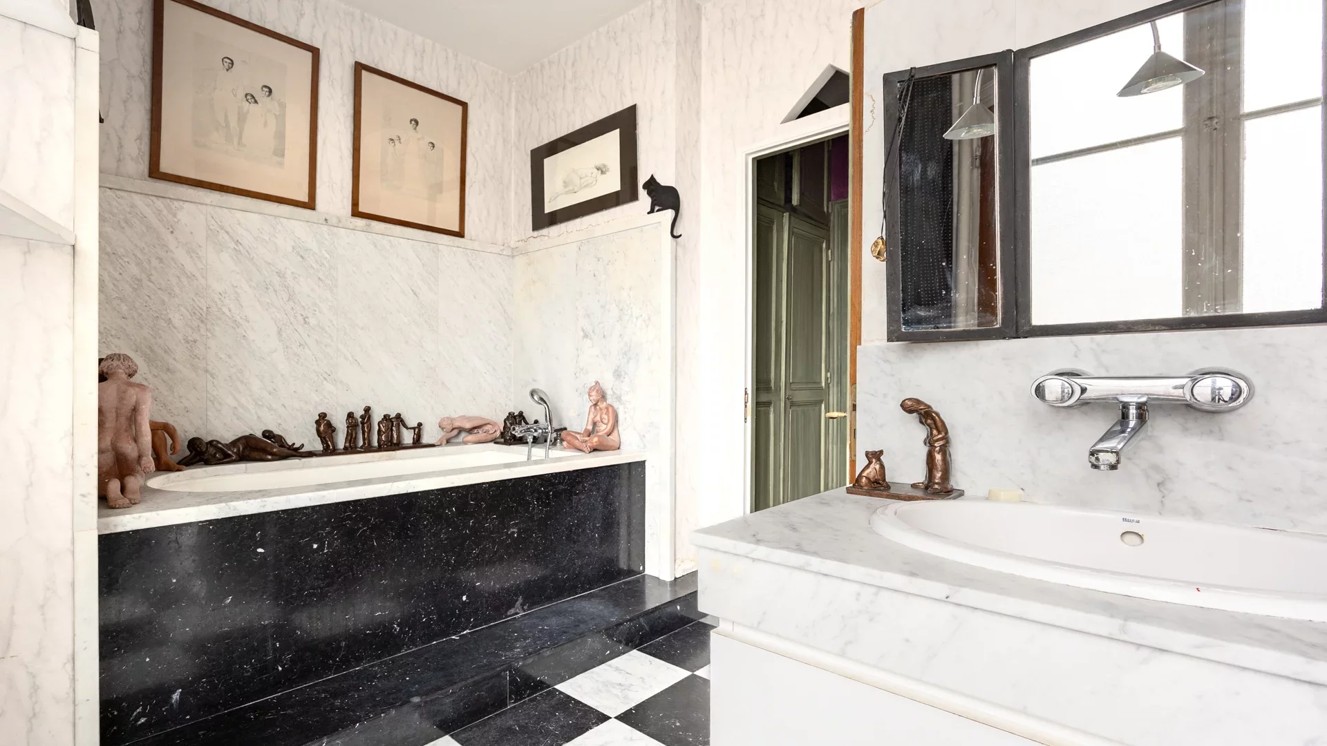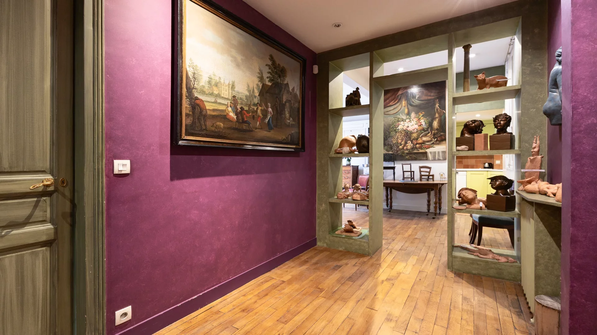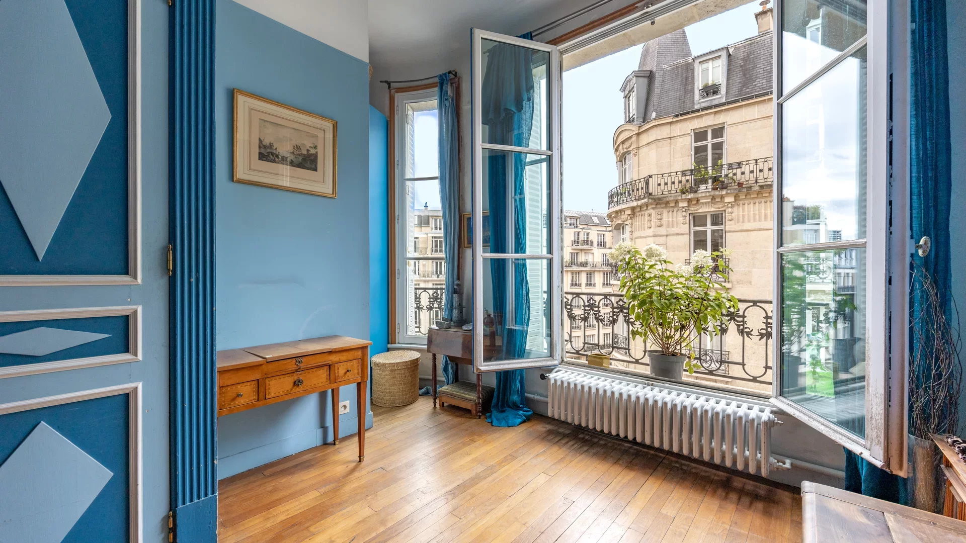 The beautiful period features have been preserved, with herringbone parquet flooring, moldings, elegant fireplaces and high ceilings. Quiet, bright and sunny, this modular property offers superb renovation potential.