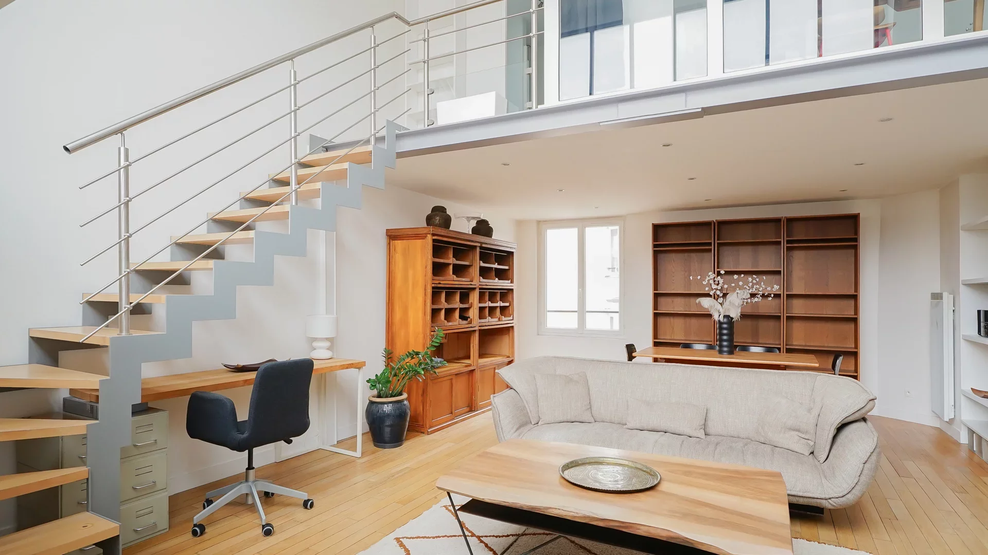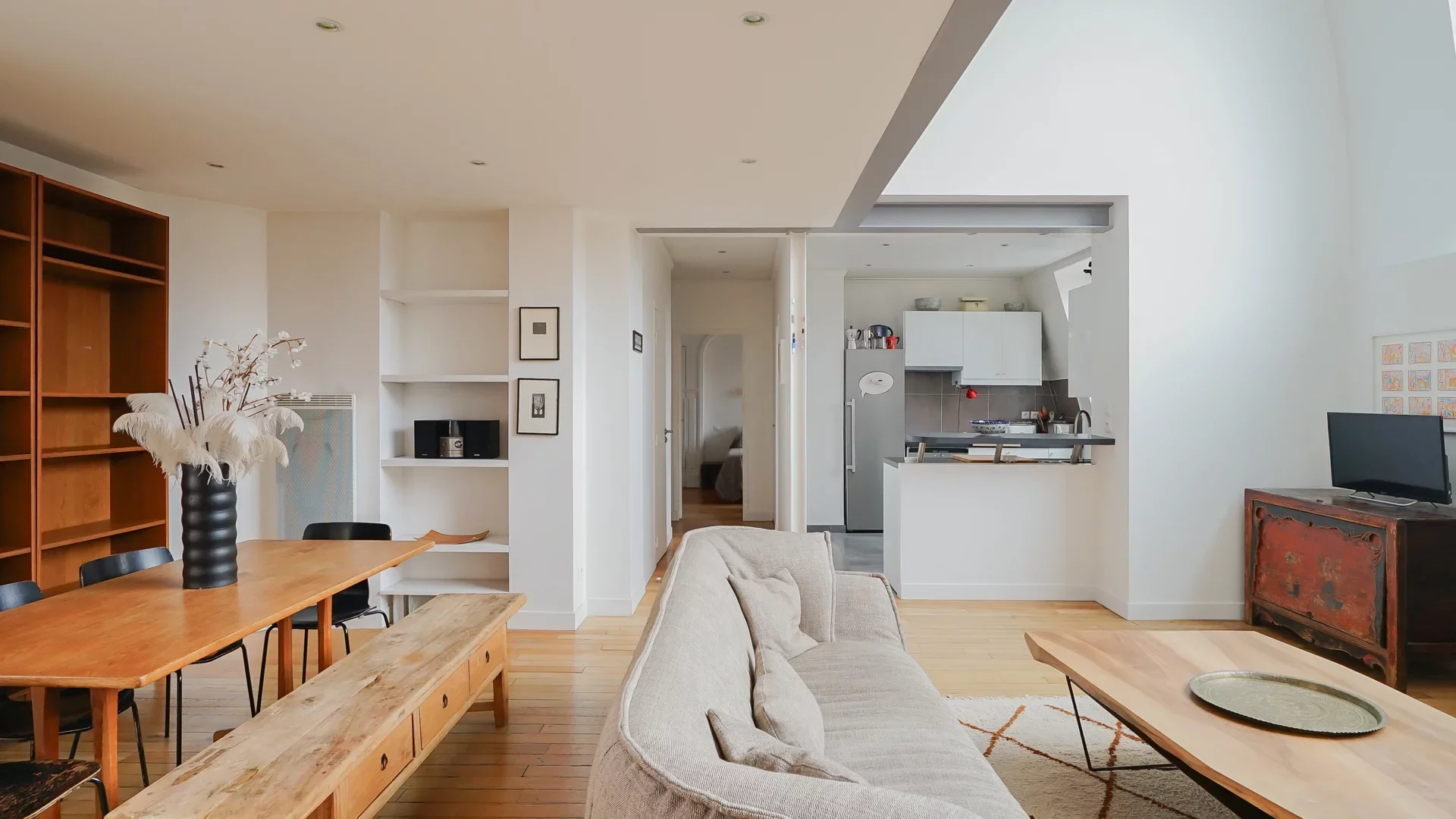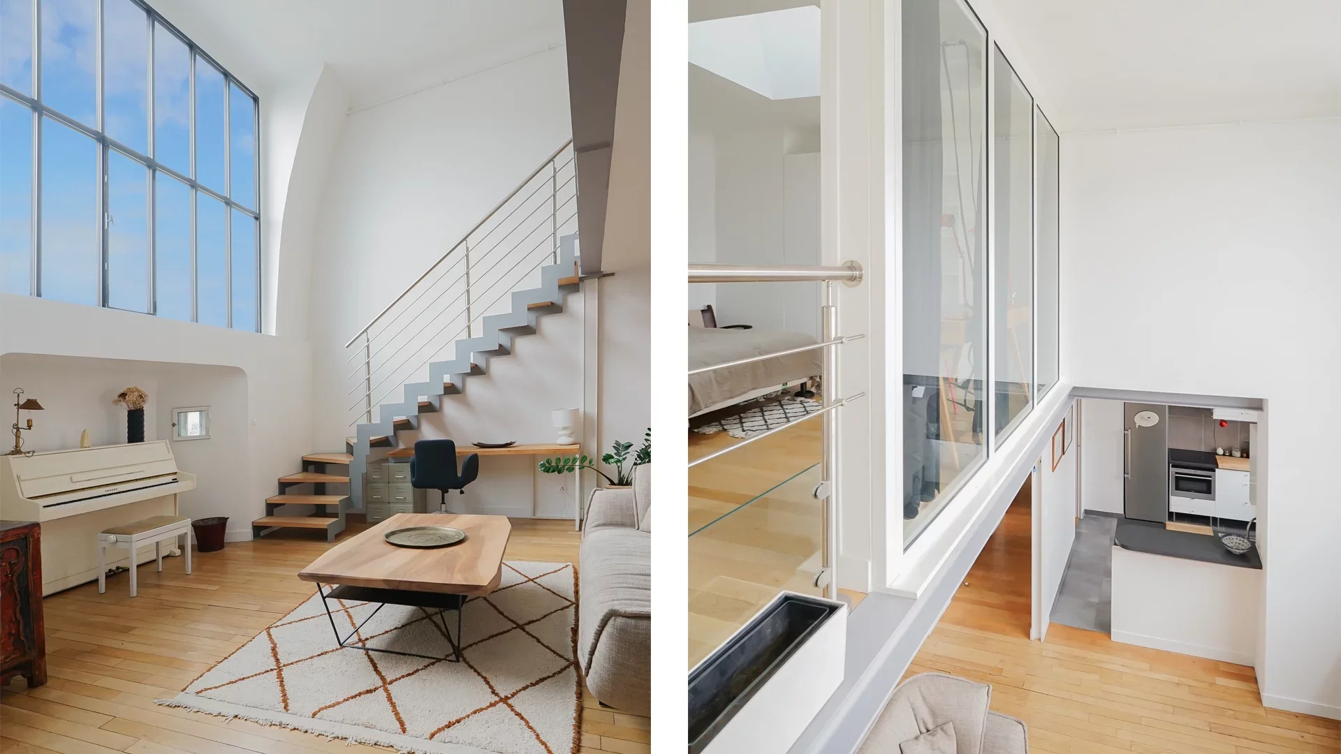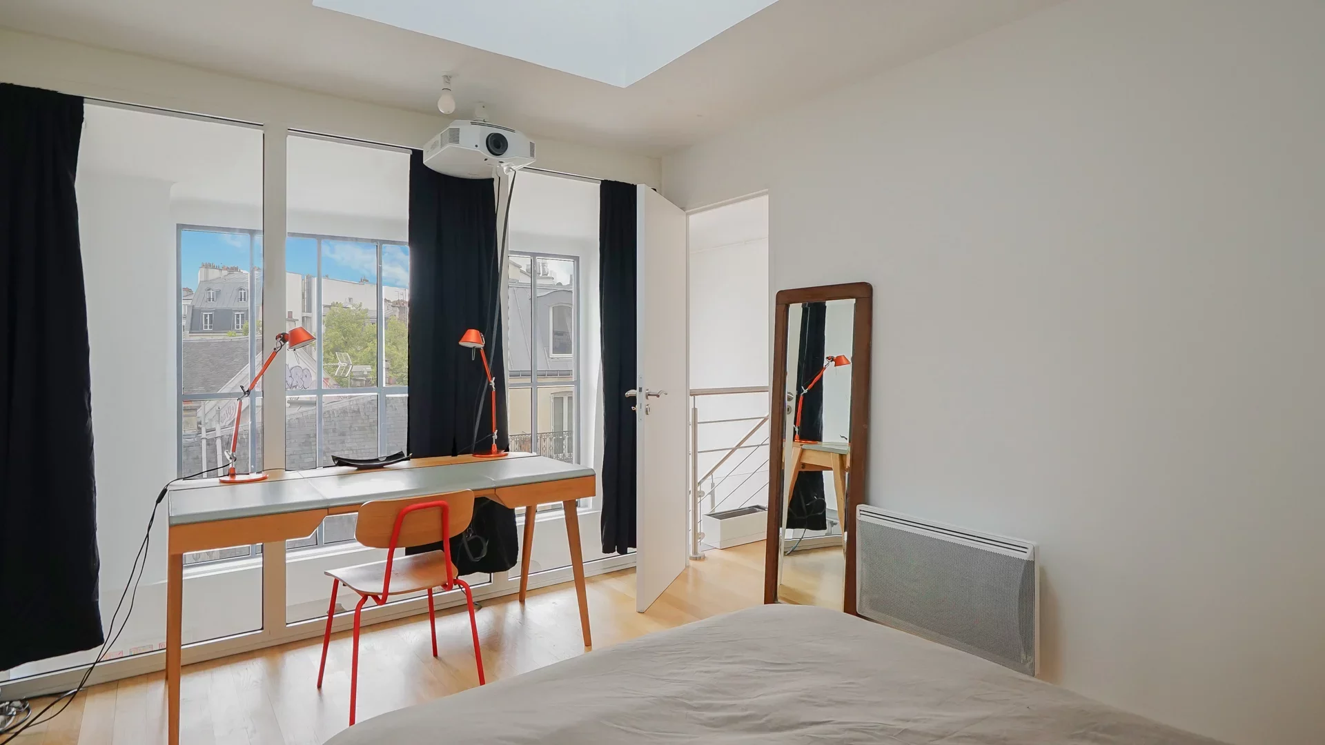 Ideally located on Rue de Bruxelles, just steps from Hector Berlioz Square and Place Blanche, this superb duplex artist's studio is nestled on the fourth and top floor with elevator access. It offers a generous surface area of 84.57sqm (Carrez law) (90.58sqm on the ground floor) bathed in light. It consists, on the first level, of a vast living room enhanced by a glass roof and nearly 4 meters of ceiling height, an open fitted and equipped kitchen, a bedroom and a shower room with toilet. Upstairs, a second bedroom with its own shower room / toilet. It offers absolute calm and superb unobstructed views of the rooftops of Paris and the Moulin Rouge. A large storage room completes this rare property, which combines old-world charm, atypical volumes and a sought-after location. EXCLUSIVE.