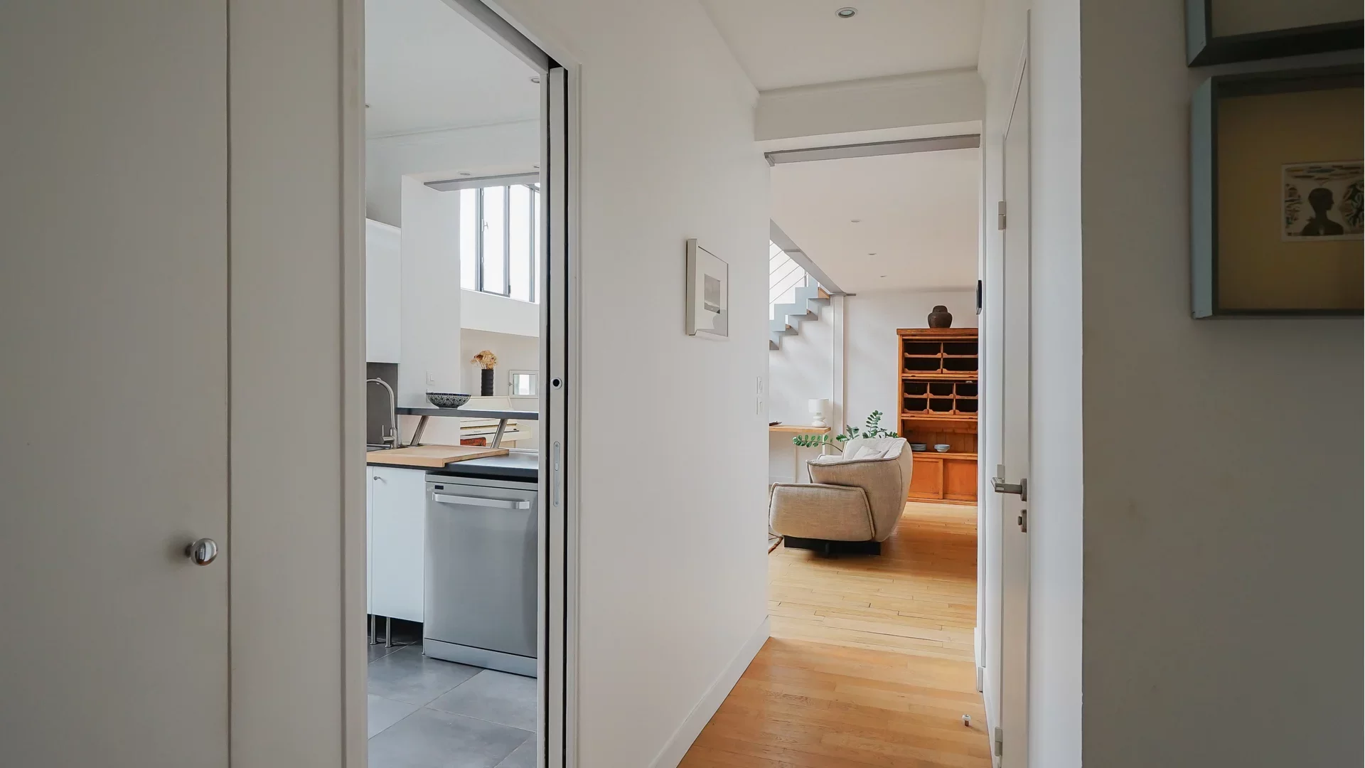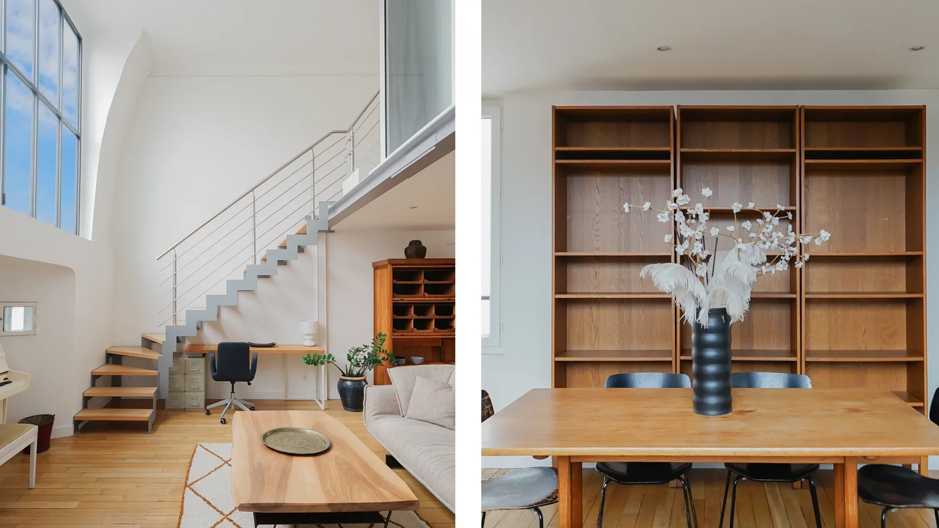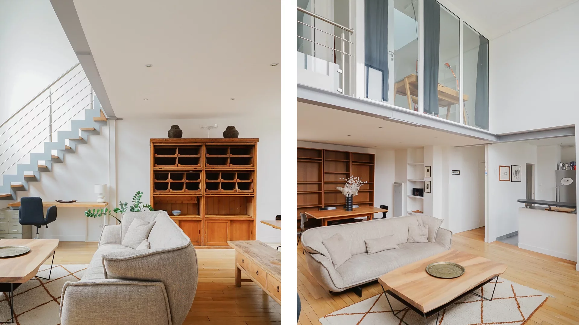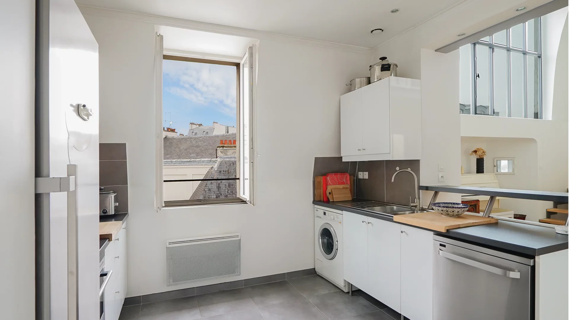 Ideally located on Rue de Bruxelles, just steps from Hector Berlioz Square and Place Blanche, this superb duplex artist's studio is nestled on the fourth and top floor with elevator access. It offers a generous surface area of 84.57sqm (Carrez law) (90.58sqm on the ground floor) bathed in light. It consists, on the first level, of a vast living room enhanced by a glass roof and nearly 4 meters of ceiling height, an open fitted and equipped kitchen, a bedroom and a shower room with toilet. Upstairs, a second bedroom with its own shower room / toilet. It offers absolute calm and superb unobstructed views of the rooftops of Paris and the Moulin Rouge. A large storage room completes this rare property, which combines old-world charm, atypical volumes and a sought-after location. EXCLUSIVE.
