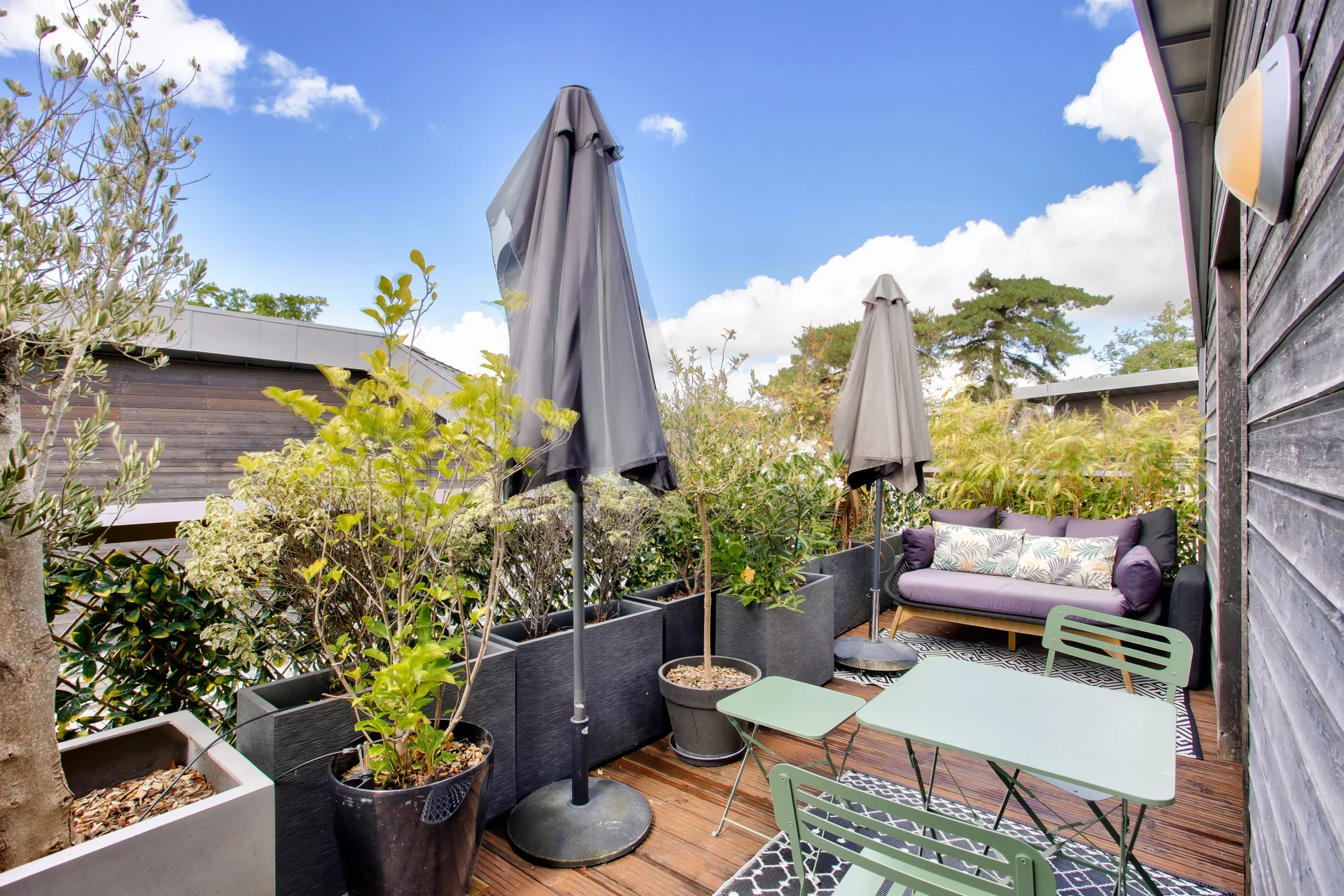 This superb apartment on the third and top floor of a recently built and meticulously maintained residence offers an exceptional living environment. Bathed in light thanks to its southern and western exposure, it features a terrace that runs around the apartment, ideal for soaking up the sun at any time of day, or simply relaxing and admiring the view. The spacious living area, with its modern open kitchen, opens directly onto this terrace, creating a true indoor-outdoor living space. The warm, refined decor combines light tones and natural materials to create an elegant, welcoming interior. The three bedrooms are generous and comfortable, with plenty of storage space. The apartment also includes a bathroom, a shower room and a separate toilet, for optimum comfort. Two basement parking spaces and a cellar complete this property in perfect condition. Located in a quiet, leafy setting facing the forest, close to shops and transport links (bus) and with direct access to the A13 and A86 freeways, this apartment combines light, comfort and quality of life.