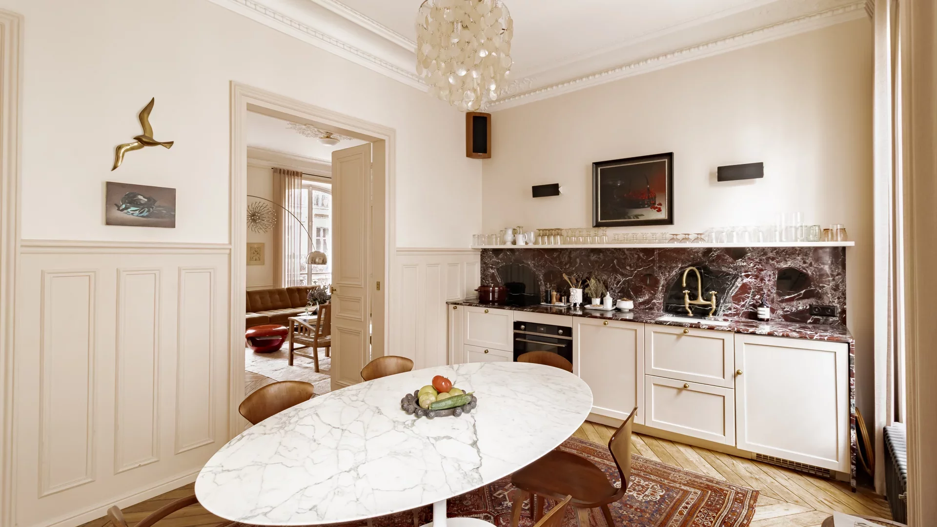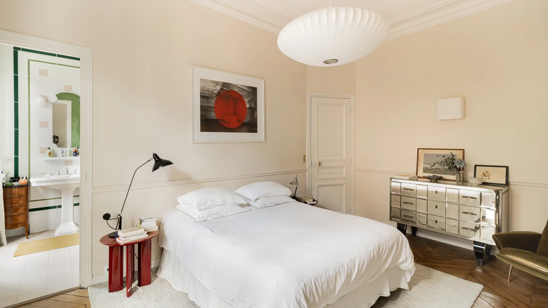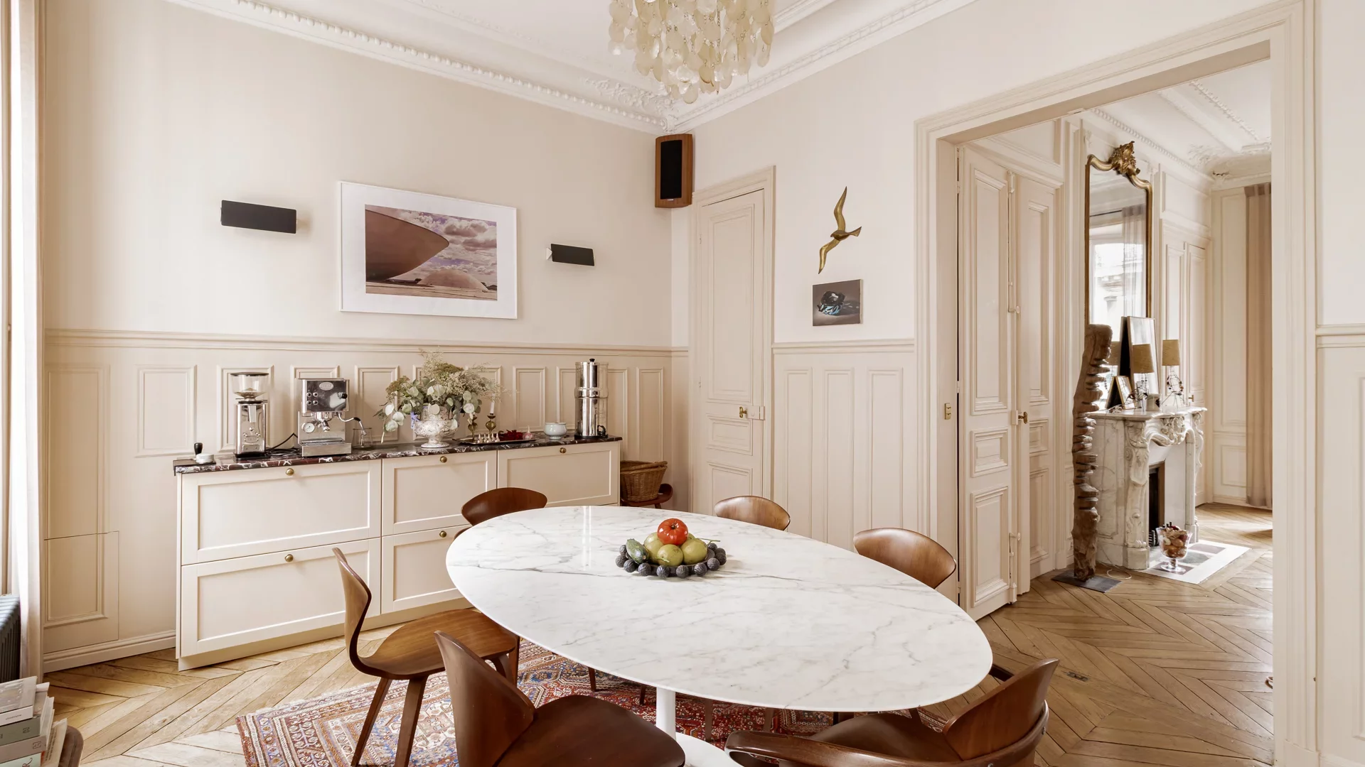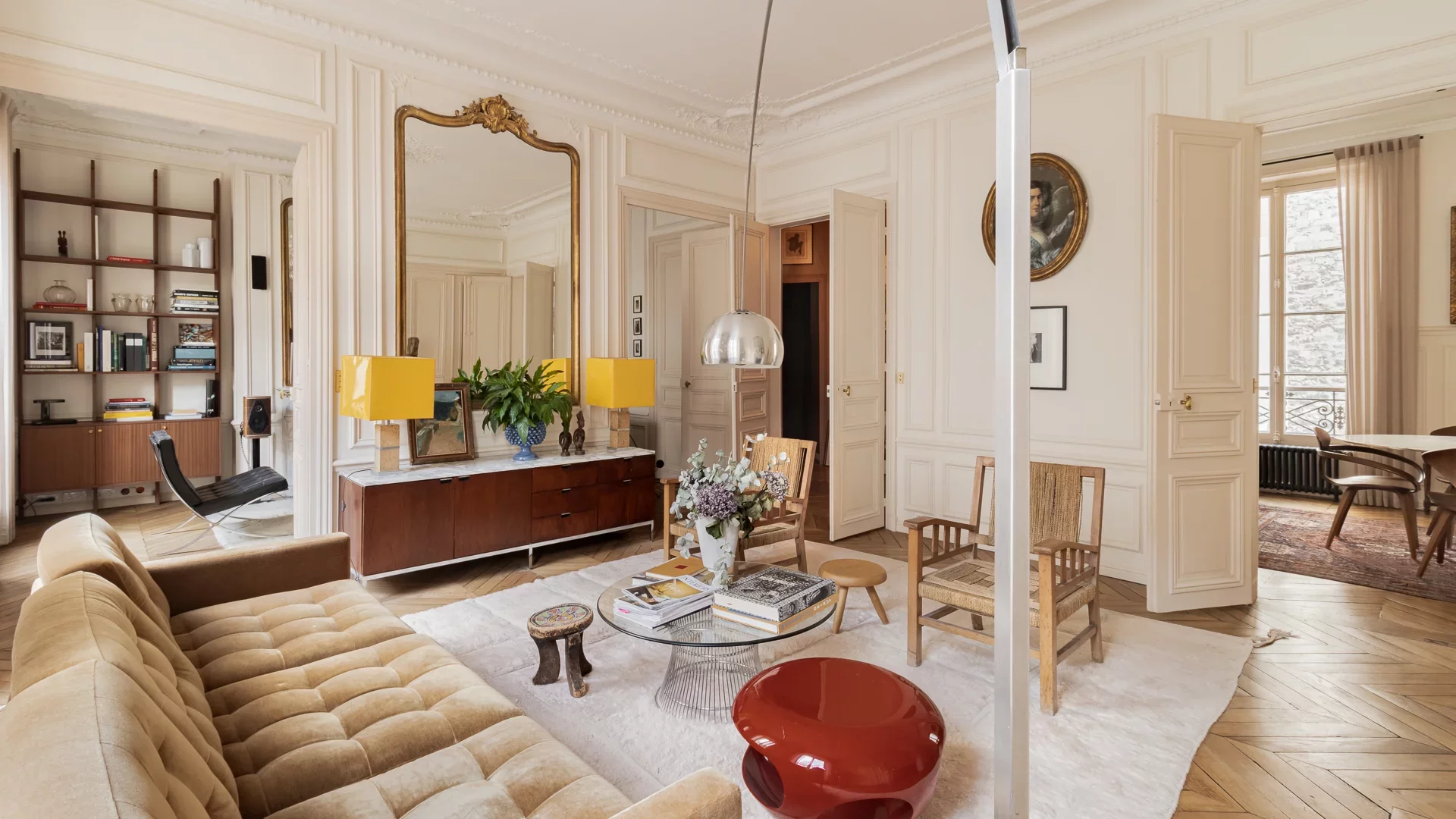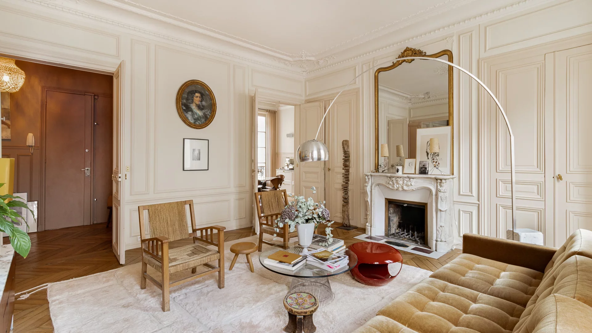 Renovated to a high standard of refinement, the apartment has preserved all the charm of the past: magnificent moldings, parquet flooring, fireplaces and exceptional ceiling heights of 3.30m.