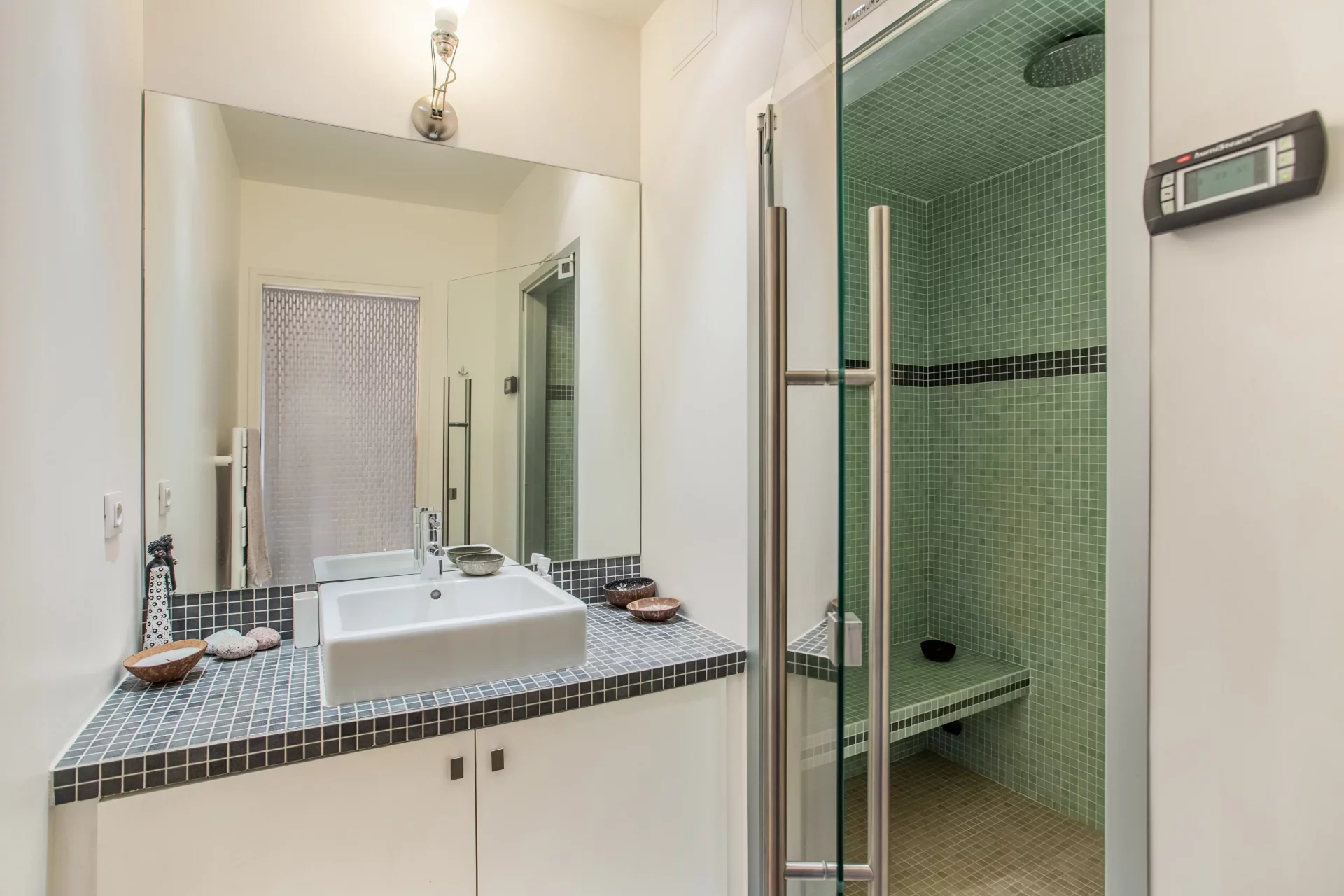 The pleasant layout features a beautiful entrance hall, a light-filled double living room with fireplace, south-facing and opening onto a balcony with unobstructed view and open kitchen, a dining room, two pleasant bedrooms with balcony (3/4 possible), a bathroom, a hammam, a large dressing room and separate toilet.