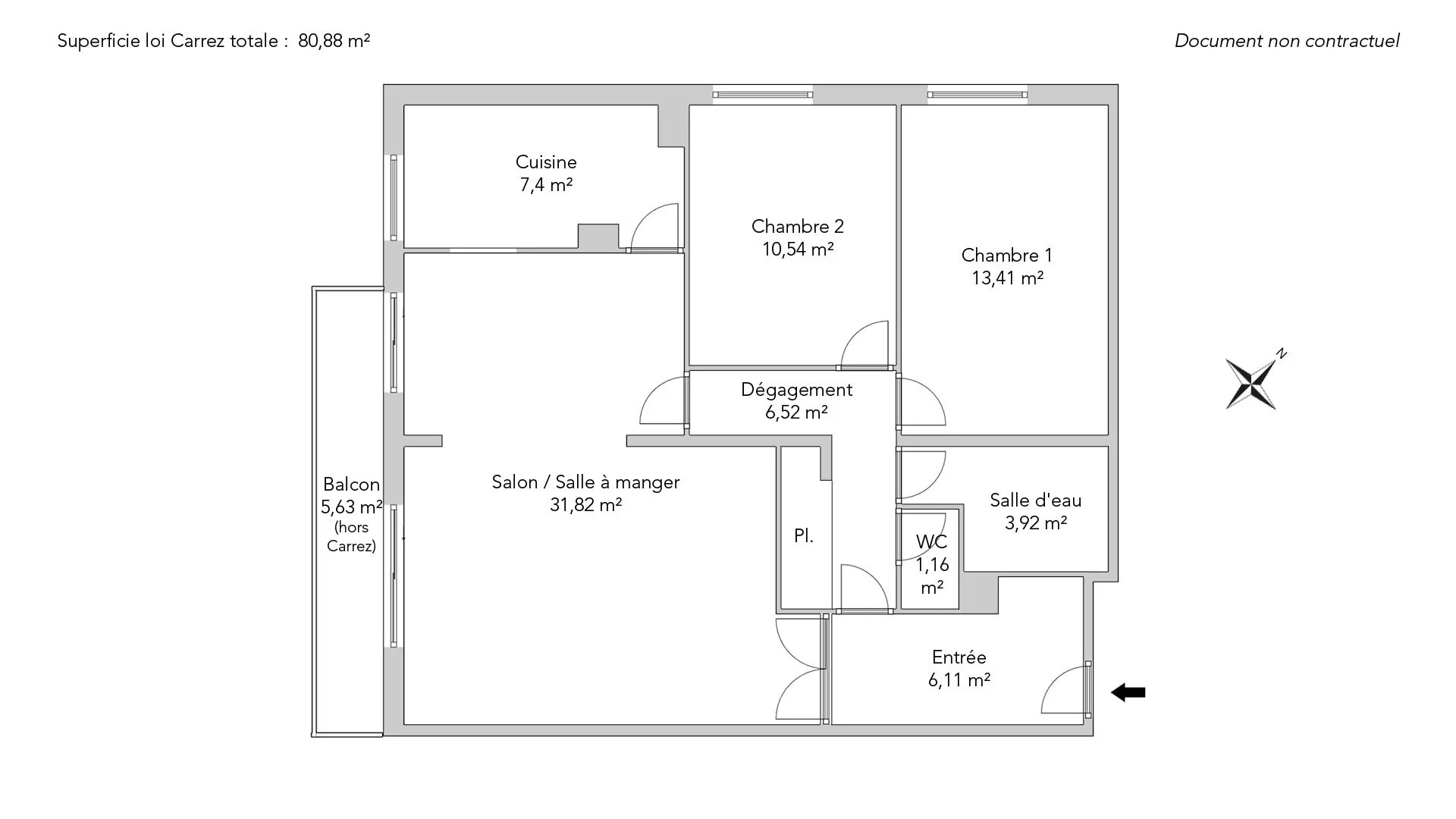 In a pedestrian street, on the third floor with elevator of a recent building, this very bright 80.88sqm Carrez apartment with balcony offers an unobstructed view.