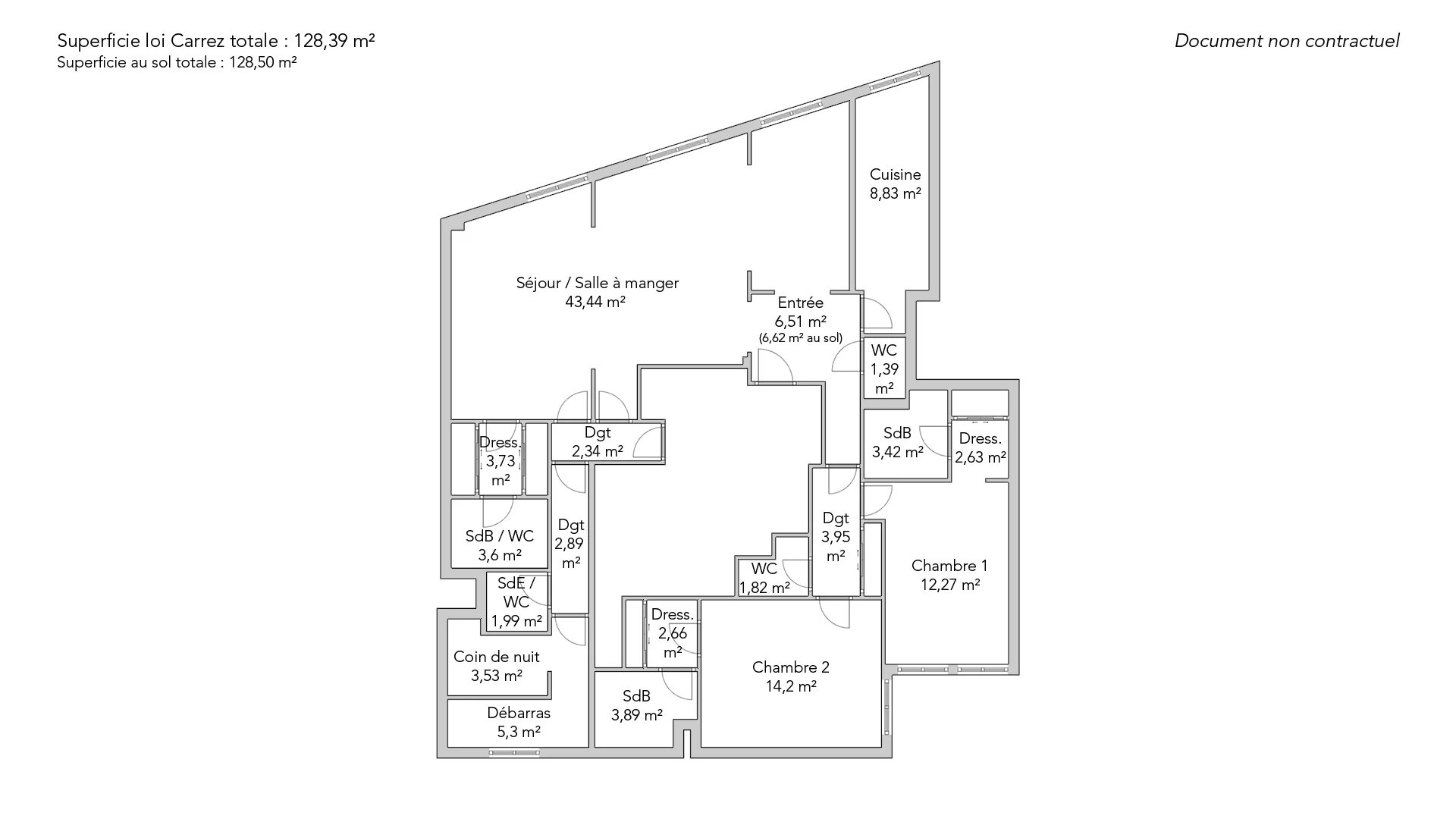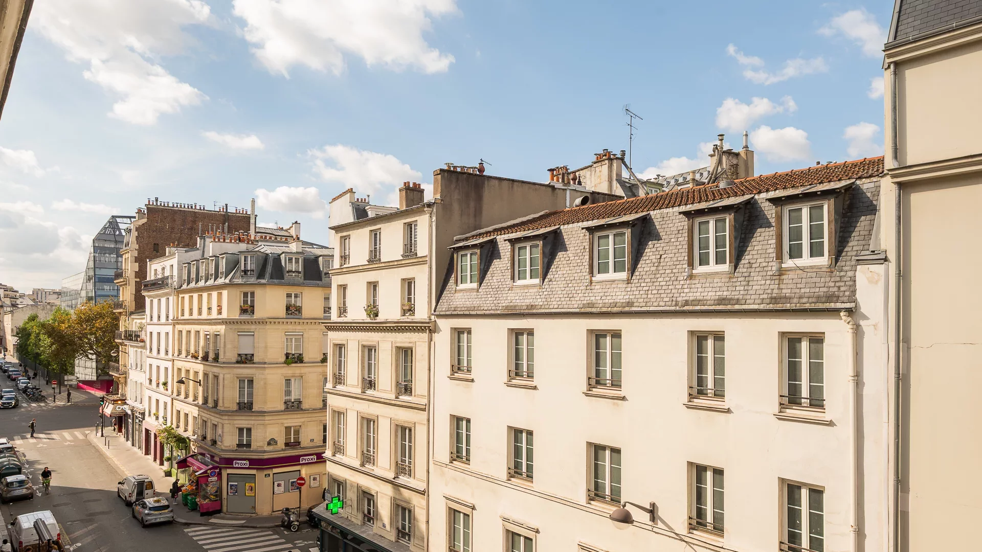 Rue du Cherche-Midi, in the heart of the 6th arrondissement, in a six-storey building, this superb 128.39sqm loi Carrez apartment, the result of the merger of an apartment and a studio, boasts generous volumes and an ideal layout.
