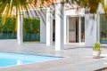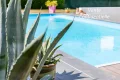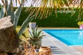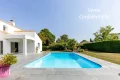 It has on the ground floor an entrance hall, cloakroom, separate toilets, a large living room, with a fireplace, and extending into a fitted kitchen (Leicht / Gaggenau), facing southeast onto a terrace and pool.