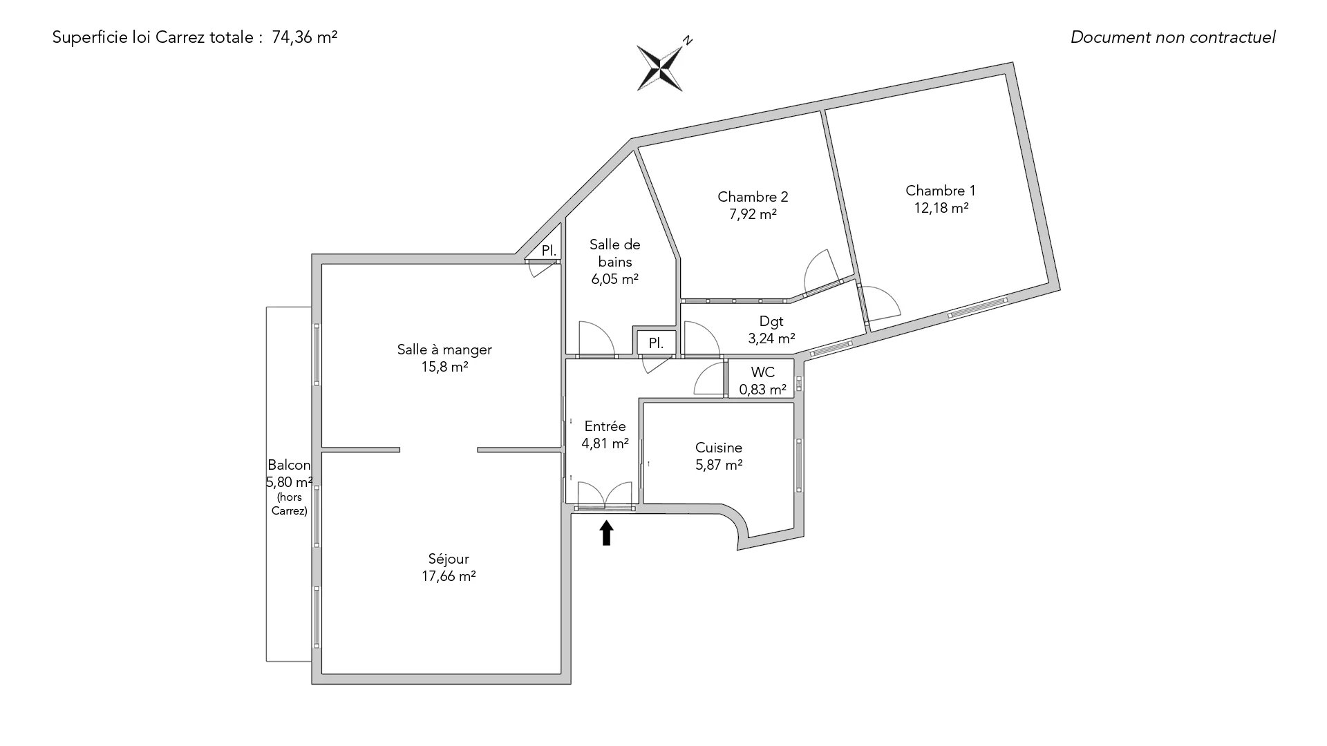 Trudaine / Dunkerque district. On the second floor with elevator of a prestigious stone building, superb apartment of 74.36sqm loi Carrez.