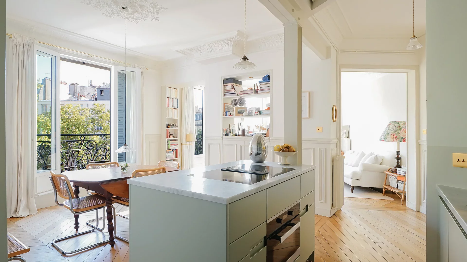 This characterful property, measuring 78.06sqm under Carrez law and 81.40sqm on the ground floor, benefits from exceptional luminosity thanks to its corner position and numerous windows with unobstructed views. The apartment combines old-world charm, with parquet floors, moldings and a functional fireplace, with meticulous renovation.