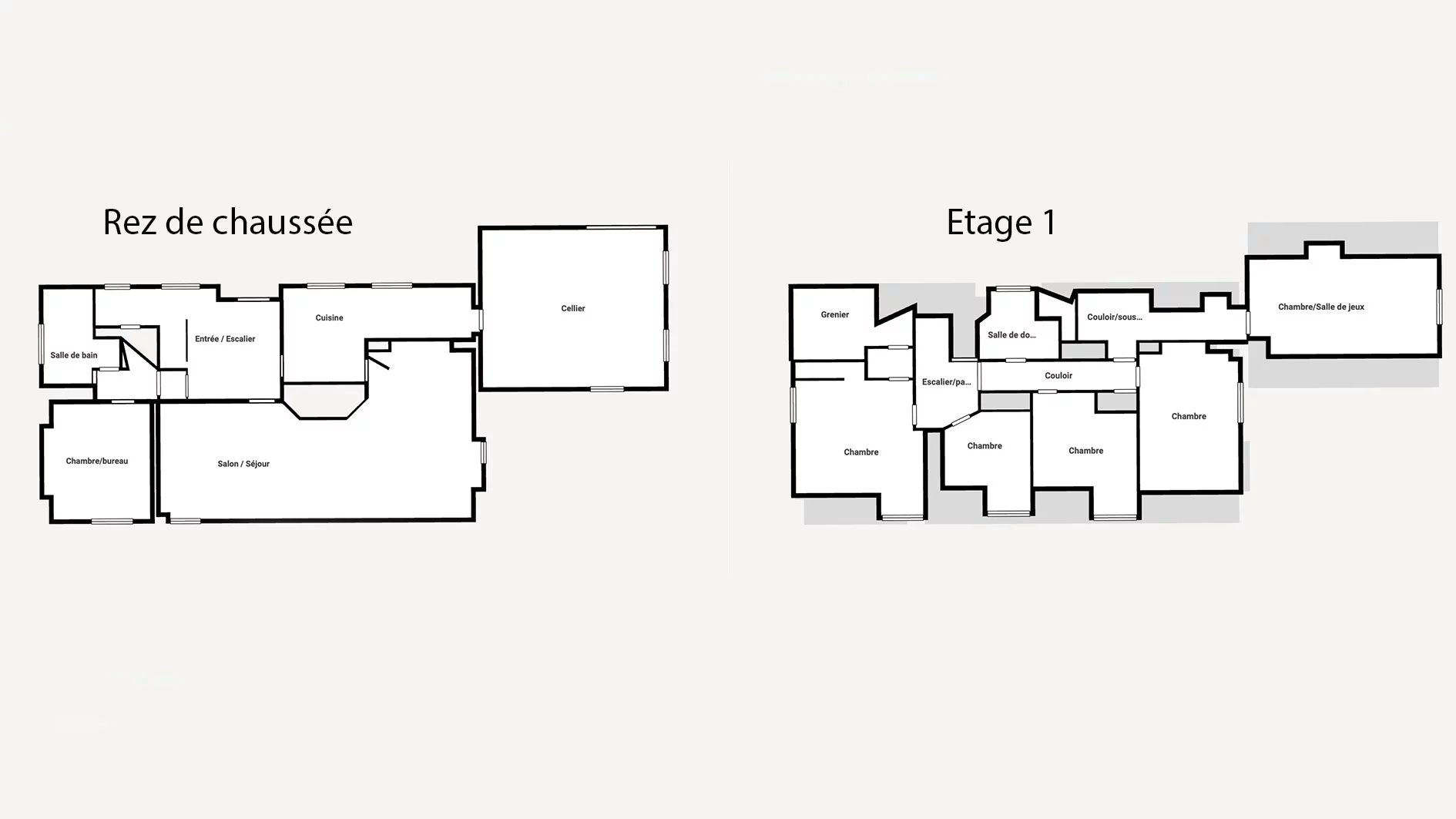 The visit begins with the entrance hall, which leads to a luminous living room of over 50m² with wood-burning fireplace and sublime solid parquet flooring. We continue on to the first floor with a separate fitted kitchen, then a first bedroom and bathroom, as well as a separate toilet.