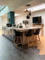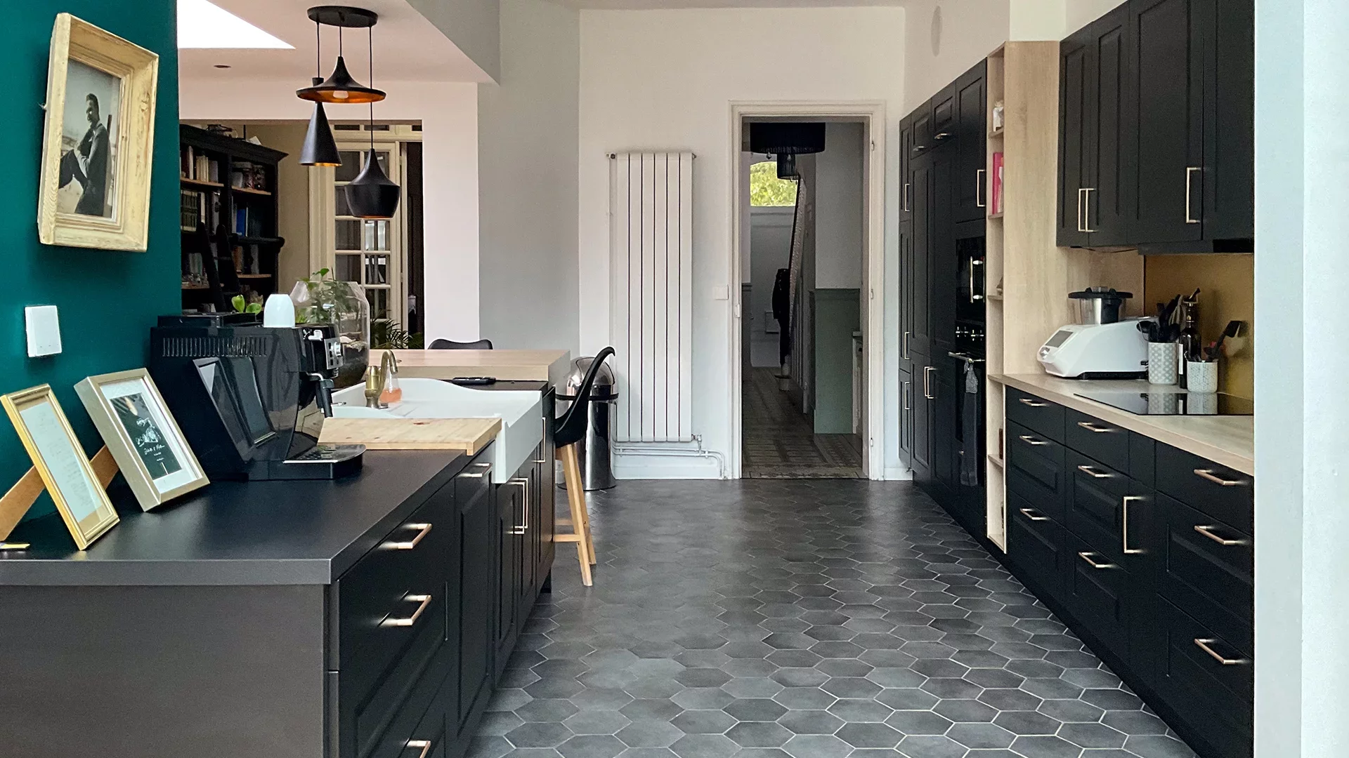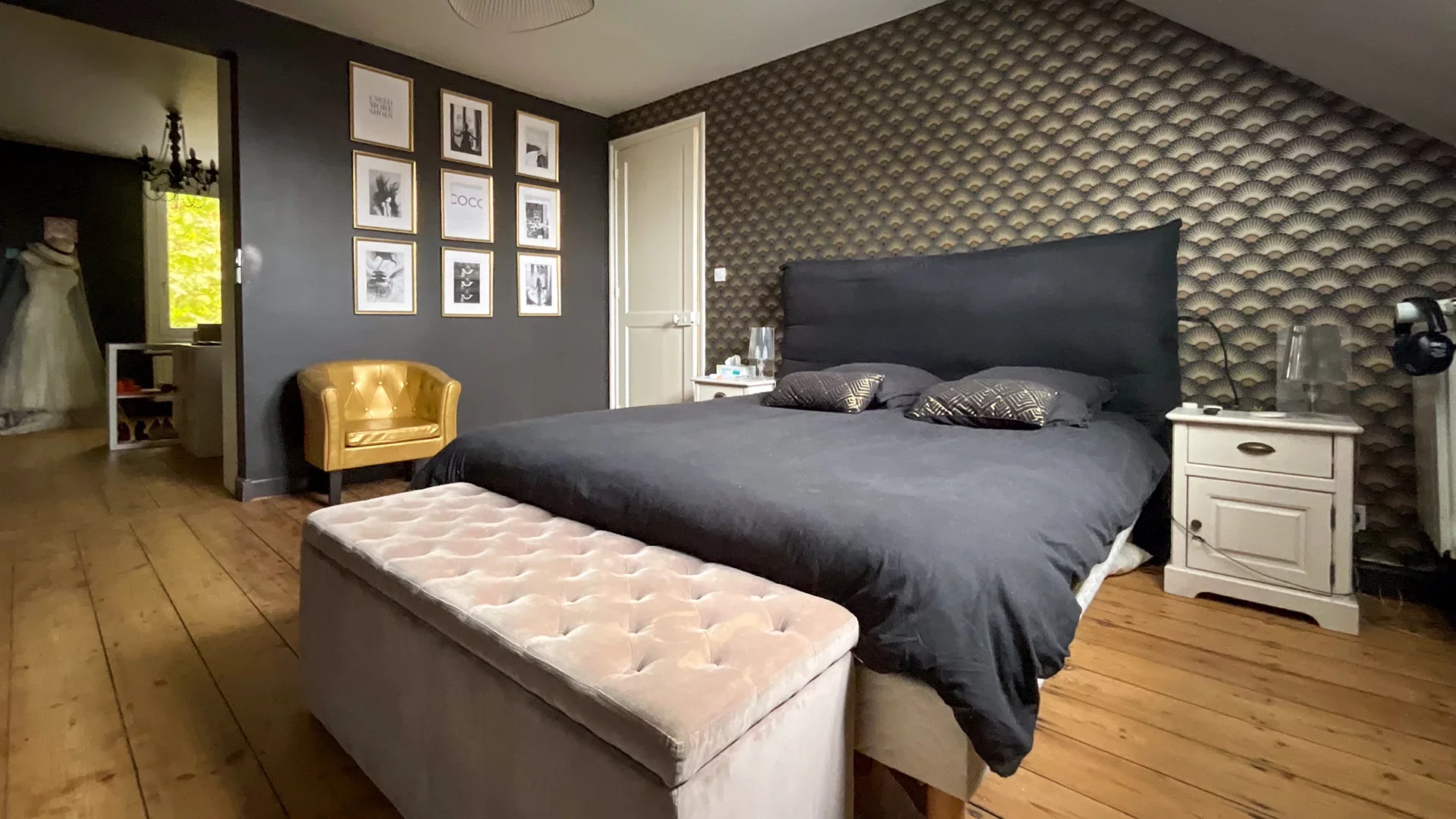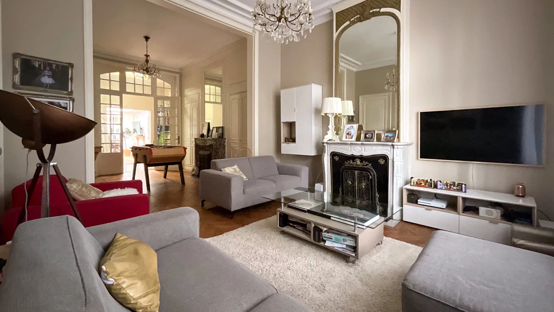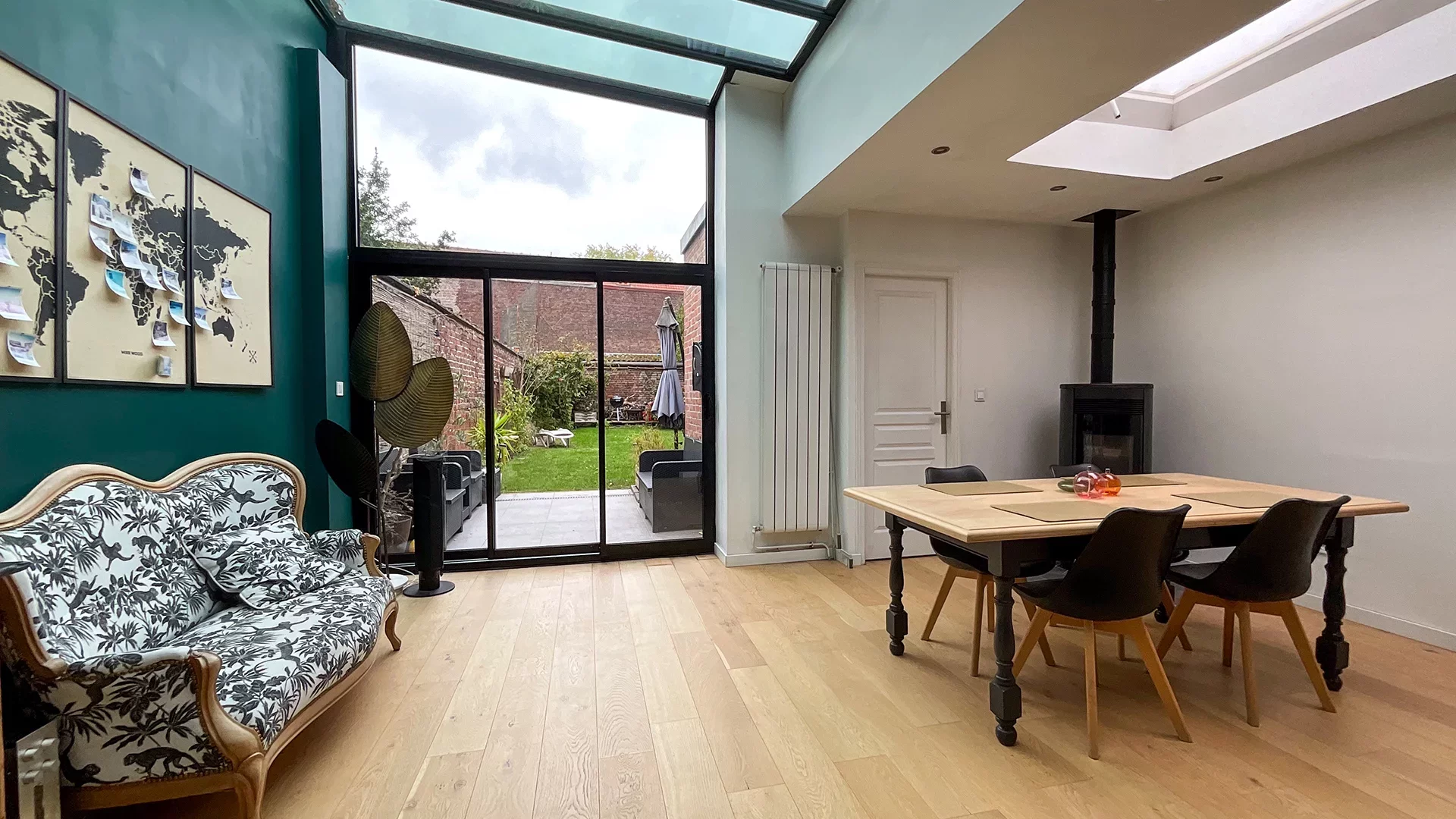 Dès l’entrée, vous serez séduit par le vaste salon-séjour de 40 m², baigné de lumière, sublimé par un parquet en chevron, des moulures élégantes et de magnifiques vitraux d’époque. La pièce se prolonge naturellement vers une superbe cuisine familiale de 50 m², entièrement rénovée en 2021, installée sous une verrière baignée de lumière naturelle. Véritable cœur de la maison, elle s’ouvre sur un joli jardin, idéal pour les repas en extérieur et les moments de détente.