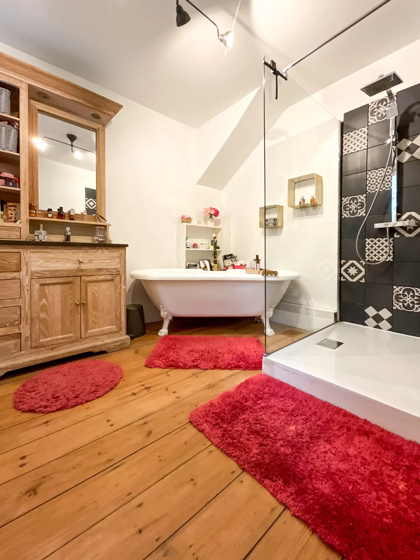 Côté confort, la maison dispose d’une chaudière gaz associée à un poêle à granulés, ce qui permet des dépenses énergétiques régulées.