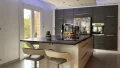 Le rez-de-chaussée, lumineux et convivial, offre une spacieuse pièce de vie avec cuisine ouverte entièrement équipée et véranda donnant sur le joli jardin.