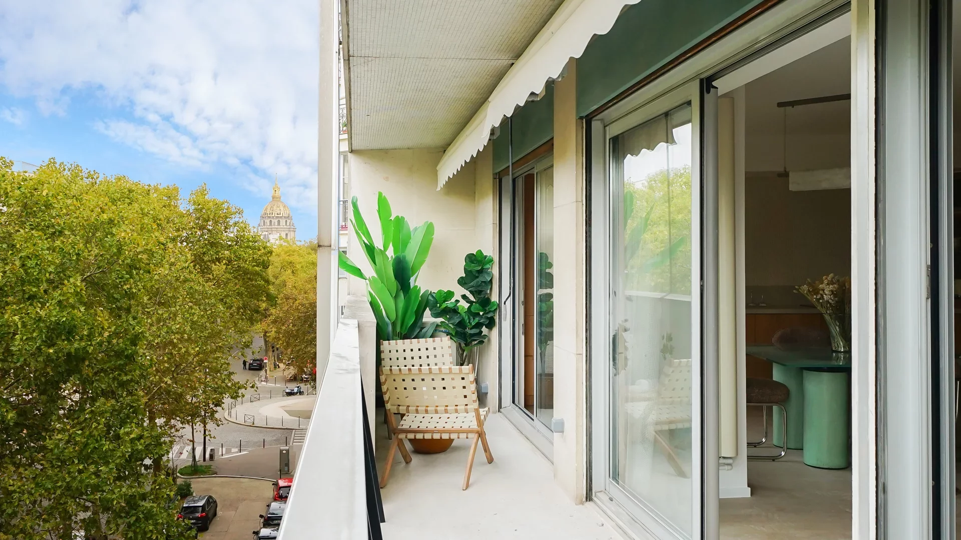 With a surface area of 93.52 m² sqm, this refined space, entirely renovated by the MERSI architecture studio, offers two spacious bedrooms and a luminous living area opening onto a vast terrace with panoramic views of UNESCO and Les Invalides.