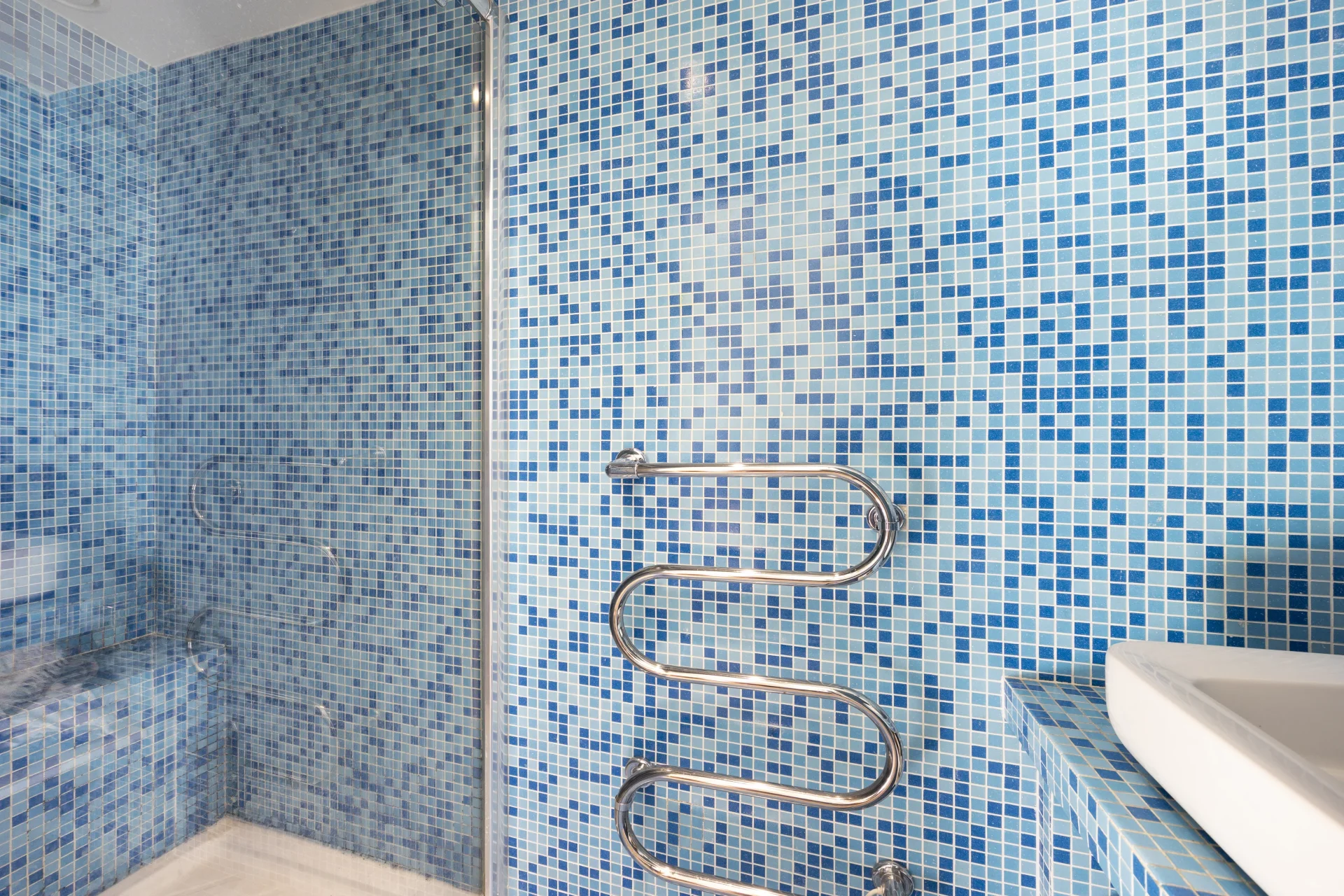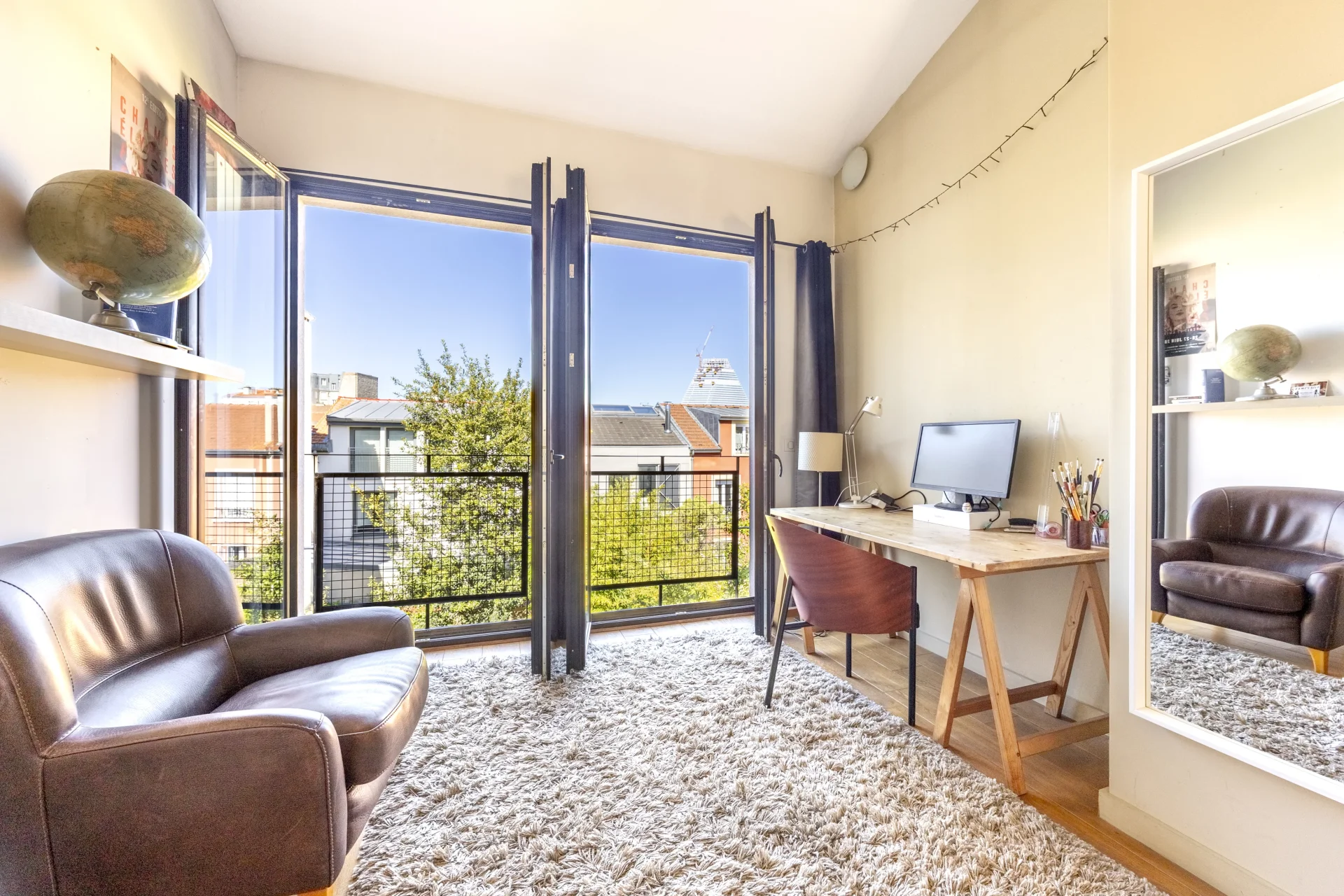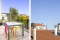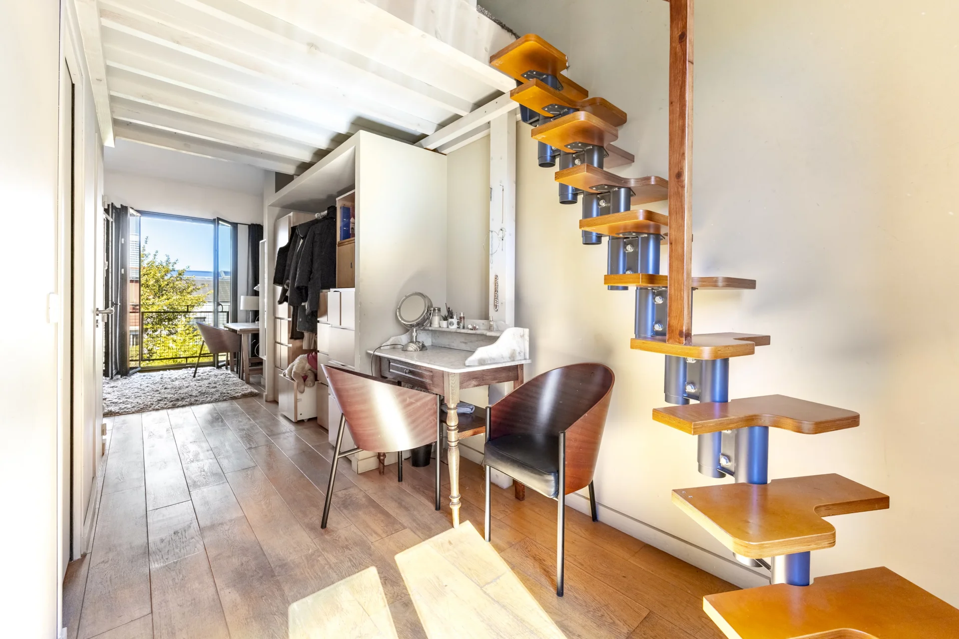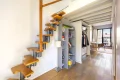 The first floor features a beautiful crossing living space, flooded with natural light, including a living room with a functional fireplace, a dining room, and an independent kitchen. The whole opens onto a sunny terrace of 15.78 sqm.
