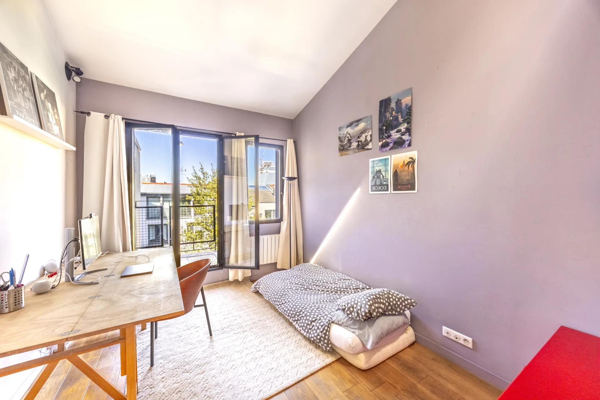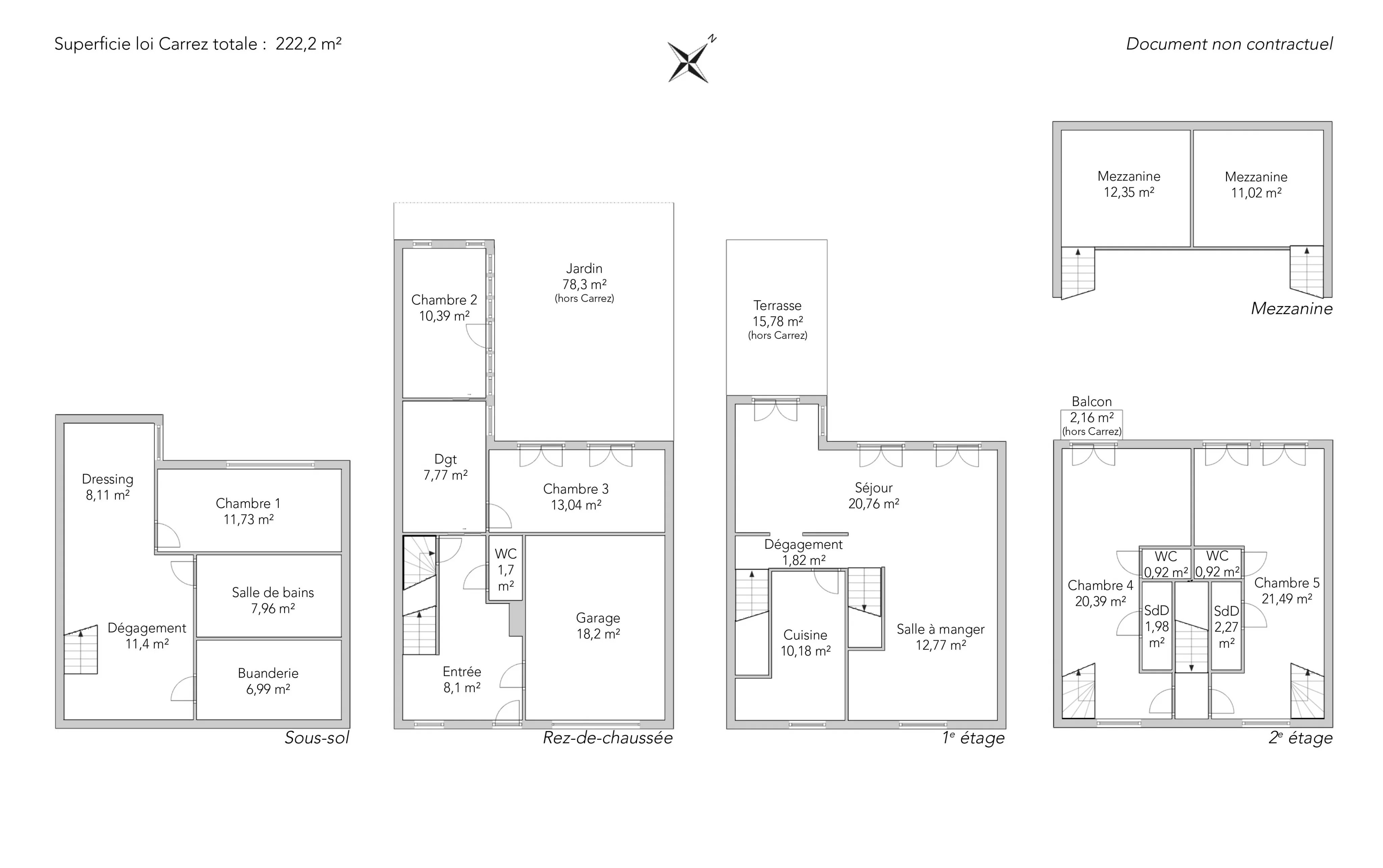 On the second floor, two bright bedrooms each have their mezzanine, bathroom, and private toilets.