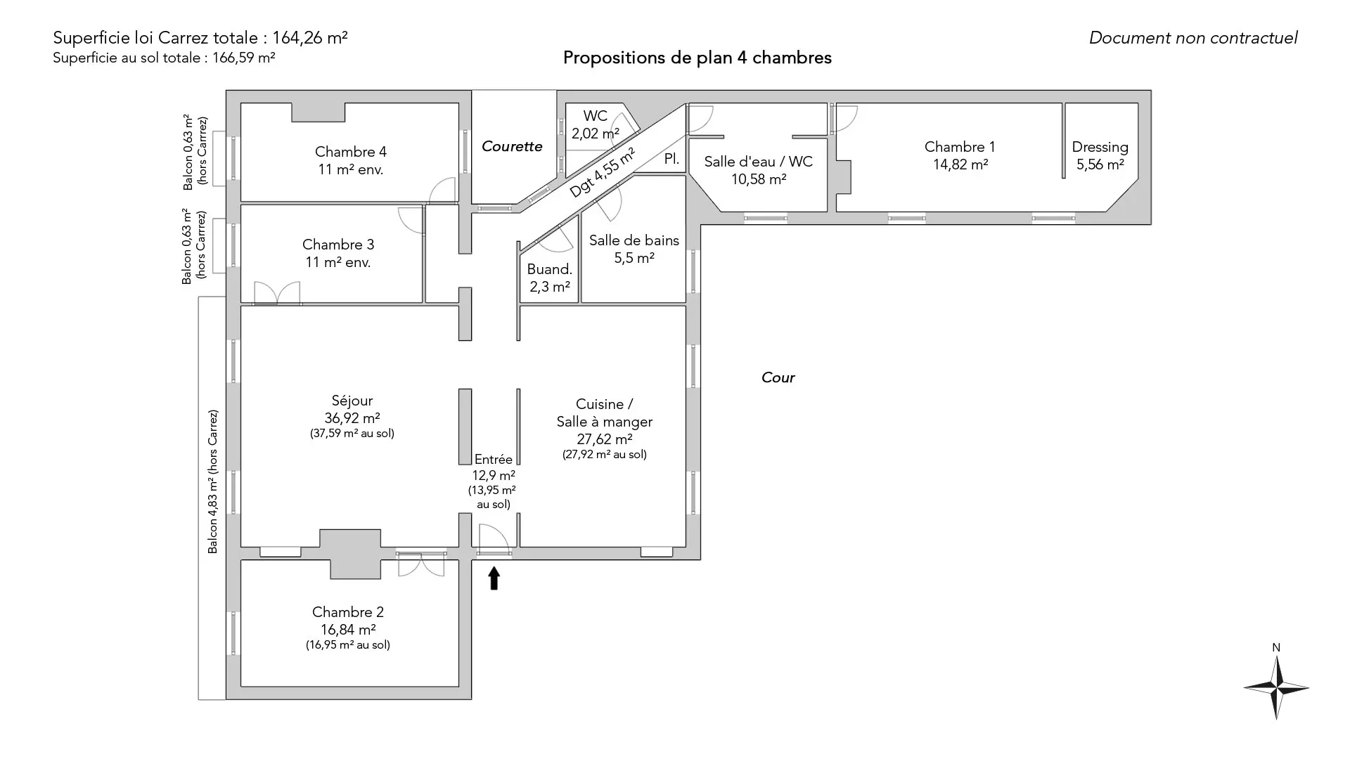 It comprises an entrance gallery leading to a west-facing living room of over 40sqm opening onto the balcony, a spacious and elegant dining kitchen, an office (or third bedroom). On the night side, a superb en-suite bedroom, quietly overlooking a beautiful courtyard, with its own shower room and dressing room, another vast bedroom, bathroom and guest toilet.