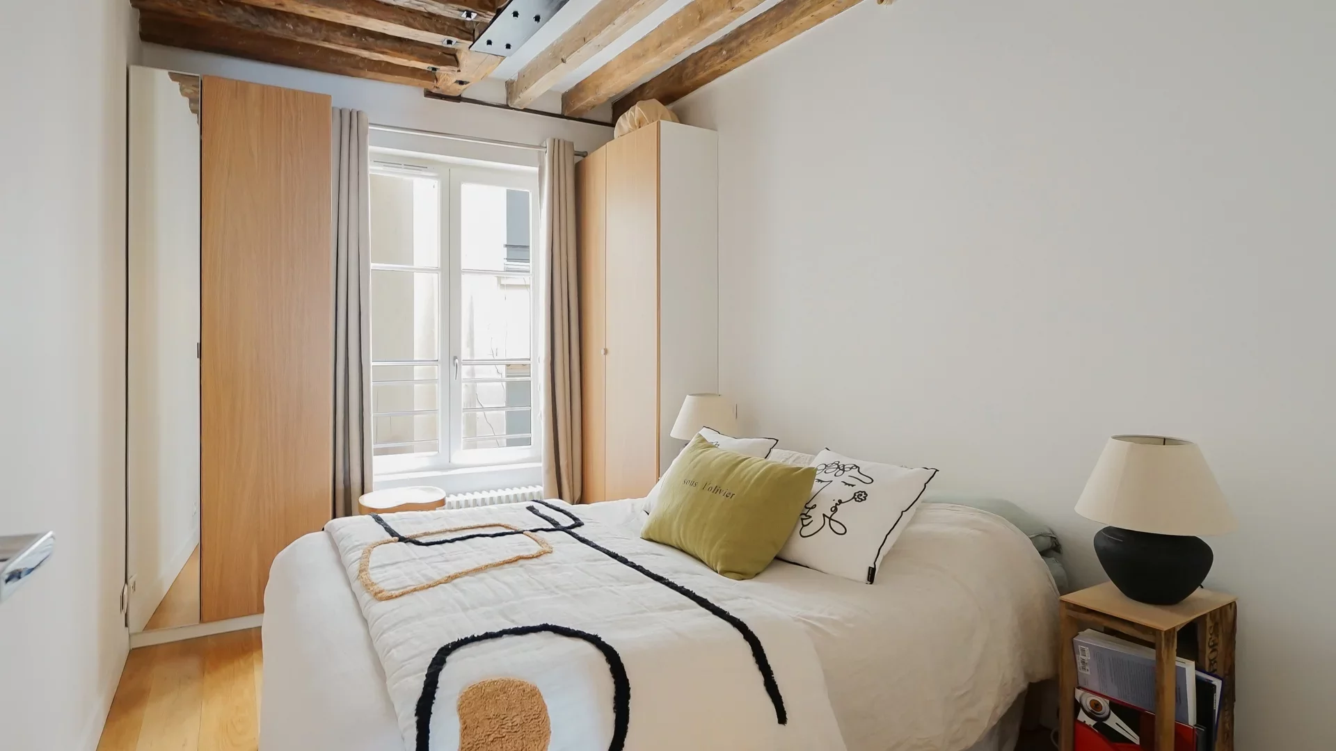 Located on the second floor with elevator of a renovated building with no work required, a two-room apartment with a surface area of 46.90sqm loi Carrez. In excellent condition, it comprises an entrance hall with storage space, a vast 26sqm living room with an unobstructed view and plenty of light thanks to its west-facing aspect and generous volumes (2.90m high ceilings). The open, fitted and equipped kitchen blends harmoniously into the living space. At night, a quiet bedroom overlooking the courtyard, a shower room and separate toilet complete the ensemble.