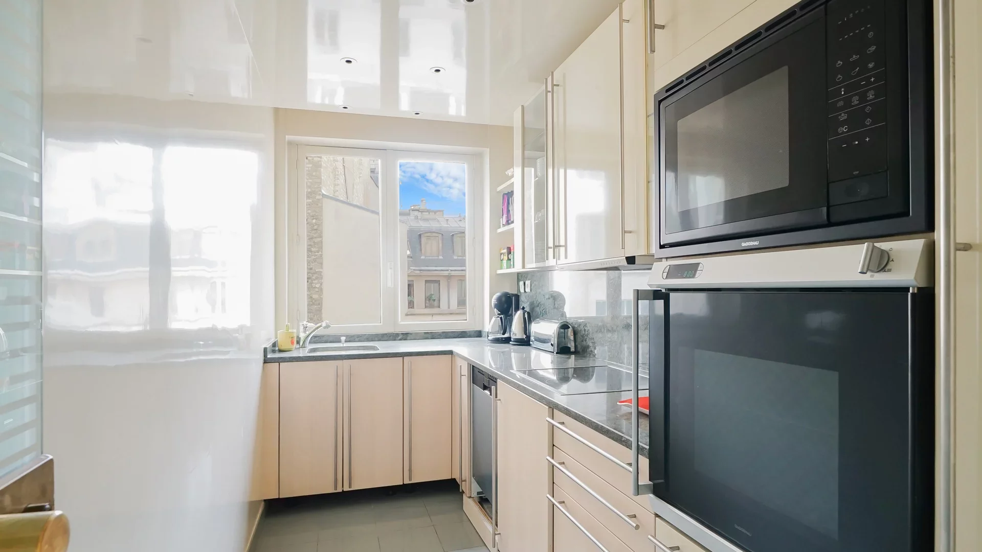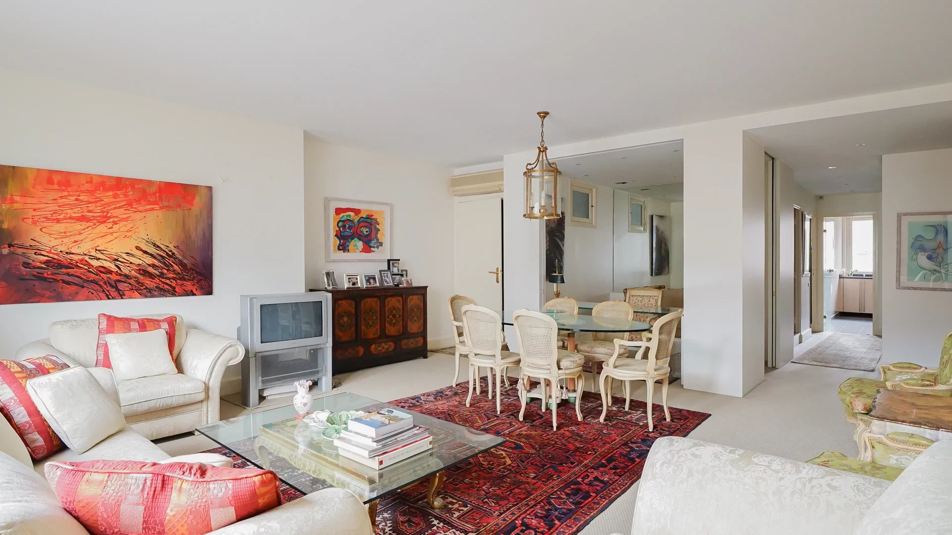 Ideally located on Avenue Montaigne in the Golden Triangle, this apartment is on the third floor with elevator of a well-maintained 1960s luxury building with janitor. Bright and airy, this 79.59sqm loi Carrez apartment comprises: entrance hall, living room overlooking the street with large window and unobstructed view of Avenue Montaigne, office area, separate kitchen, bedroom overlooking the courtyard, bathroom with toilet. A basement cellar completes the property. Refreshments to be provided. EXCLUSIVITY.