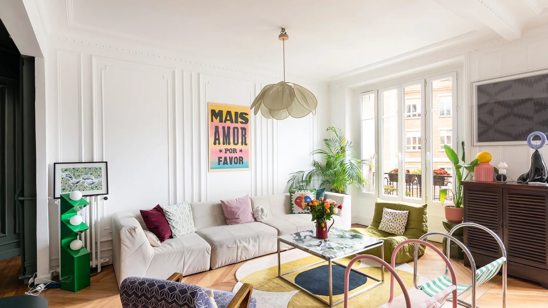 On the third floor by elevator of a beautiful 1930s stone and brick building, 91.74sqm loi Carrez apartment in very good condition, completely renovated by architect.