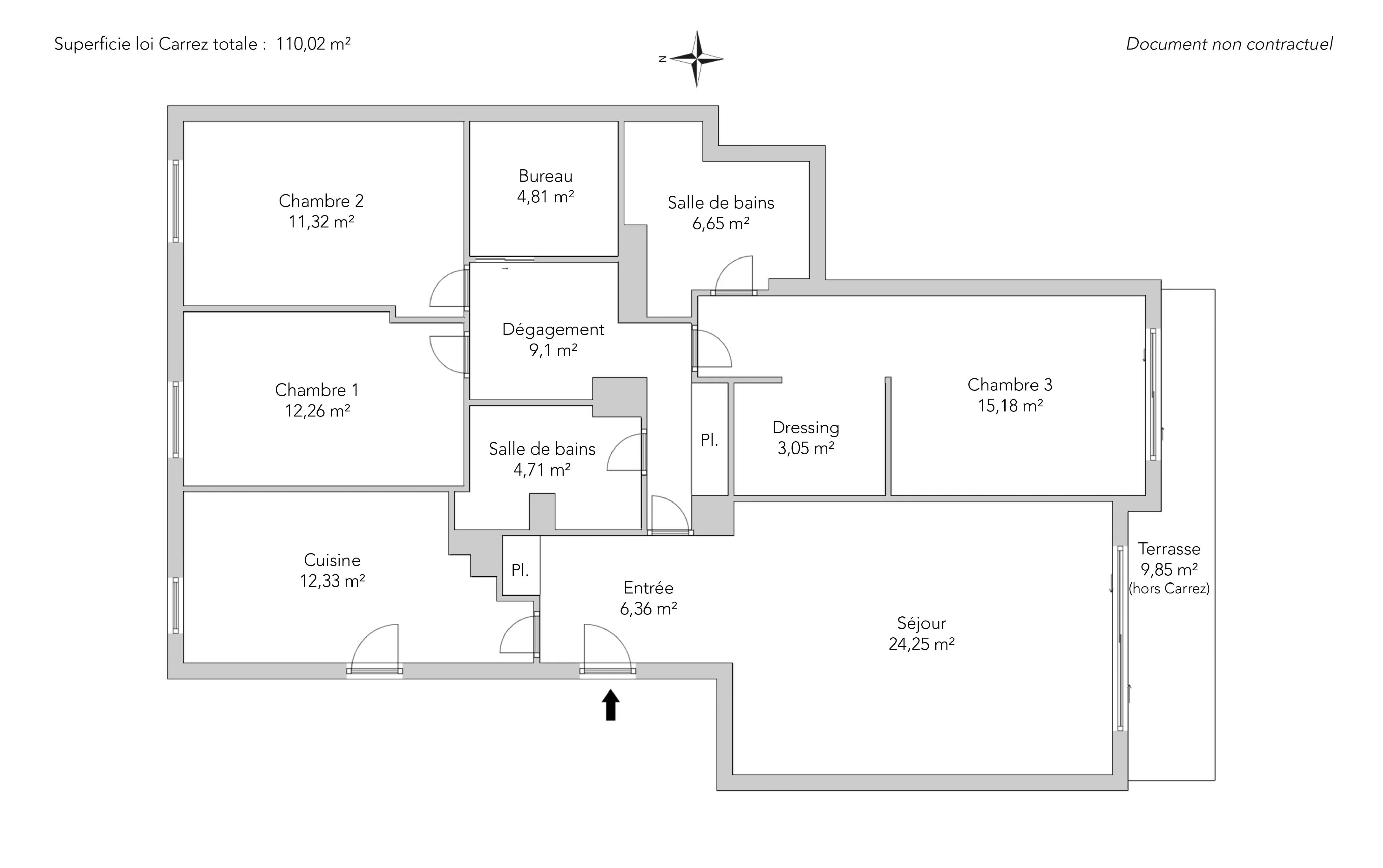 In a condominium with janitor, a 110.02sqm loi Carrez apartment located on the second floor, in a quiet area and entirely overlooking a garden.