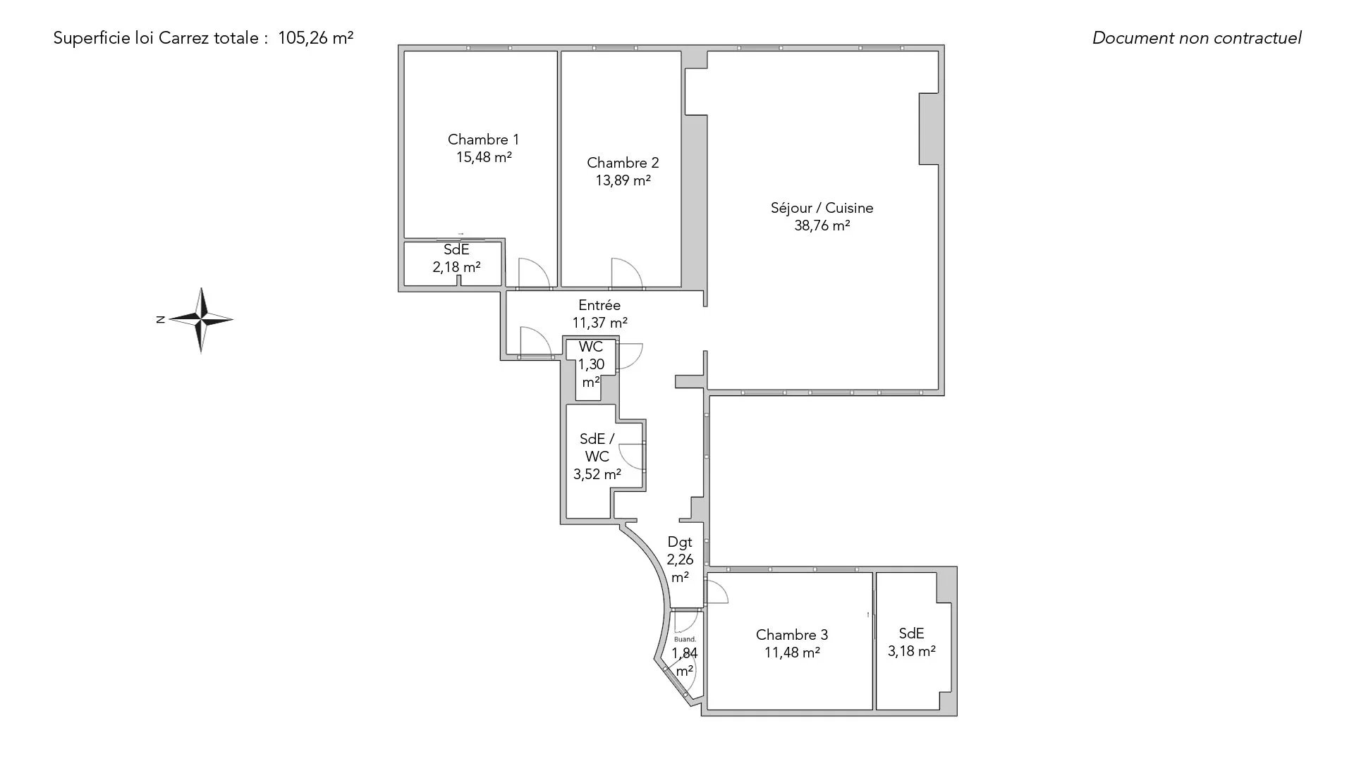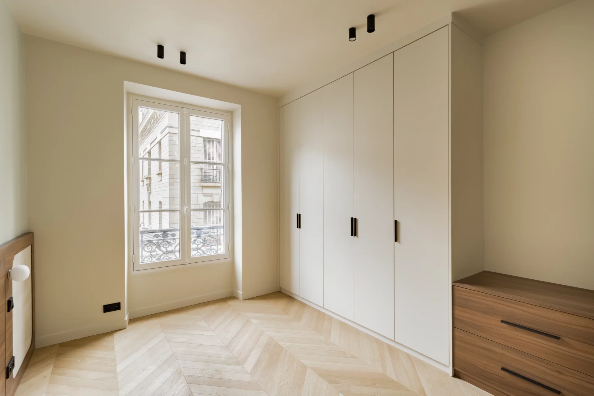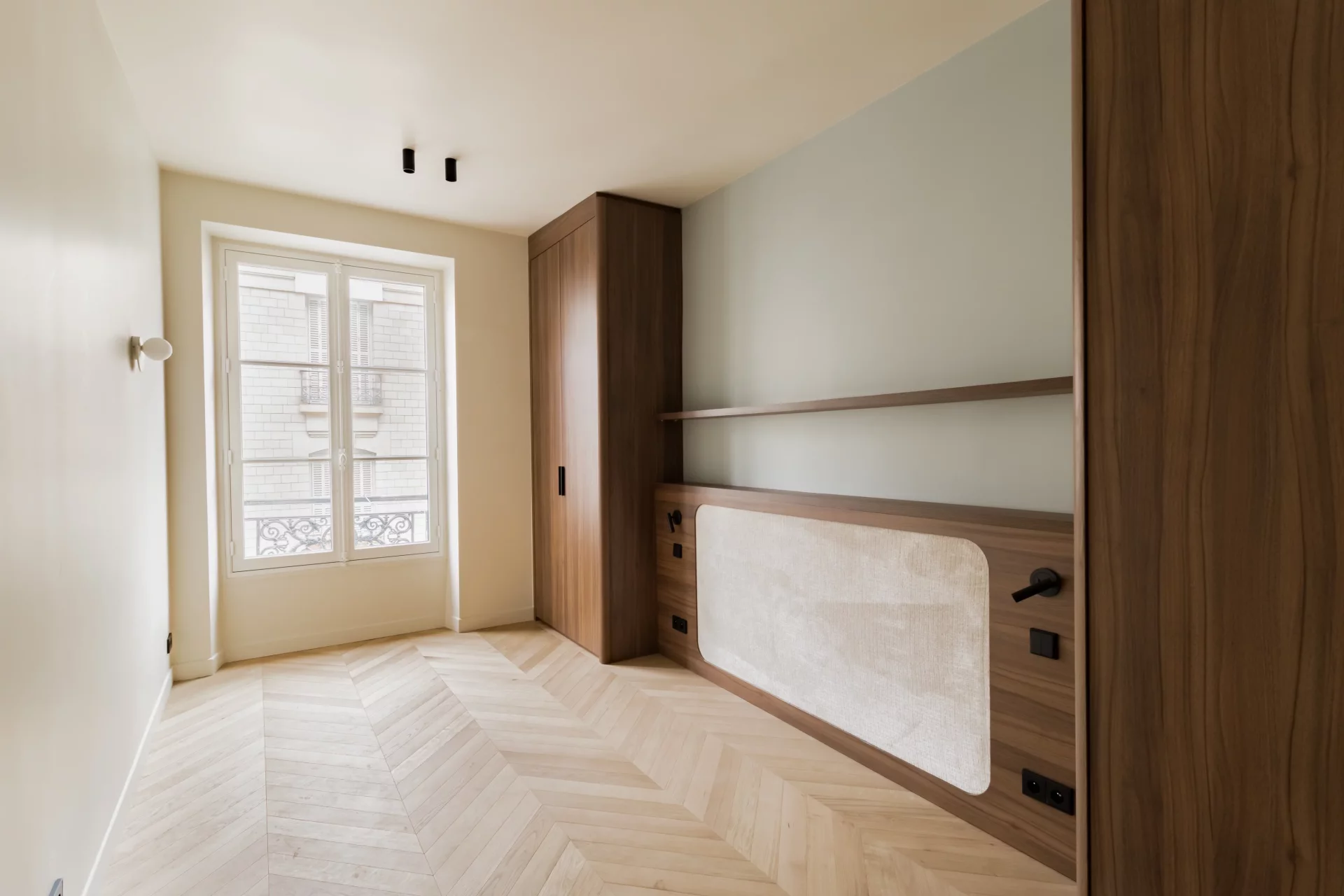 Located on the second floor by elevator of a beautiful old building with janitor, magnificent family apartment of 105.26sqm loi Carrez entirely renovated by architect.