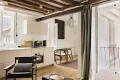 On the fifth floor, it comprises an entrance hall with a remarkable 4.50-meter high ceiling, opening onto a pleasant living room extended by a fully-equipped open-plan kitchen. A separate toilet completes this level.