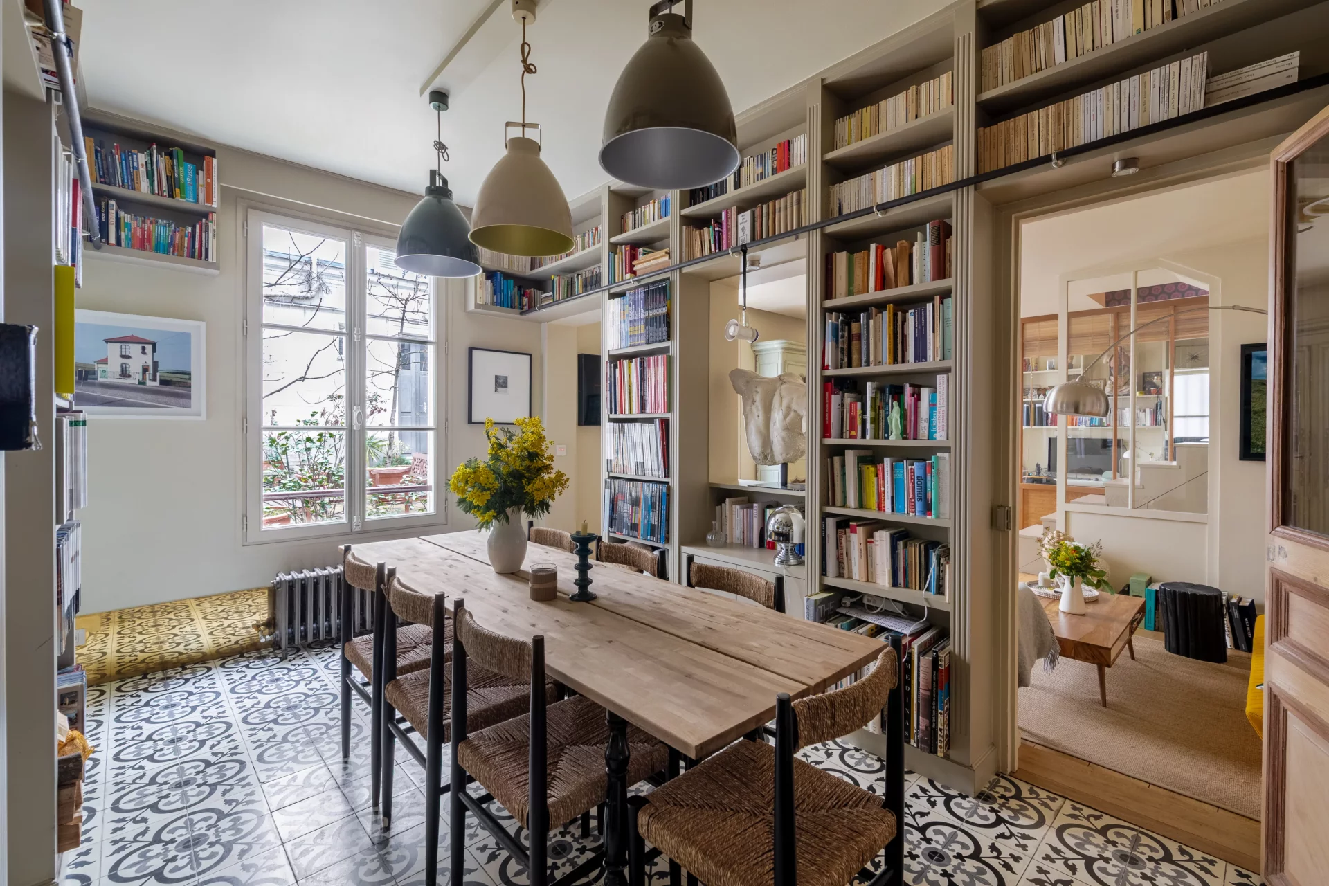 Rue de Clichy, close to rue Ballu and in the calm of a charming planted courtyard, superb family duplex, like a house, with recent careful renovation and ideal layout.