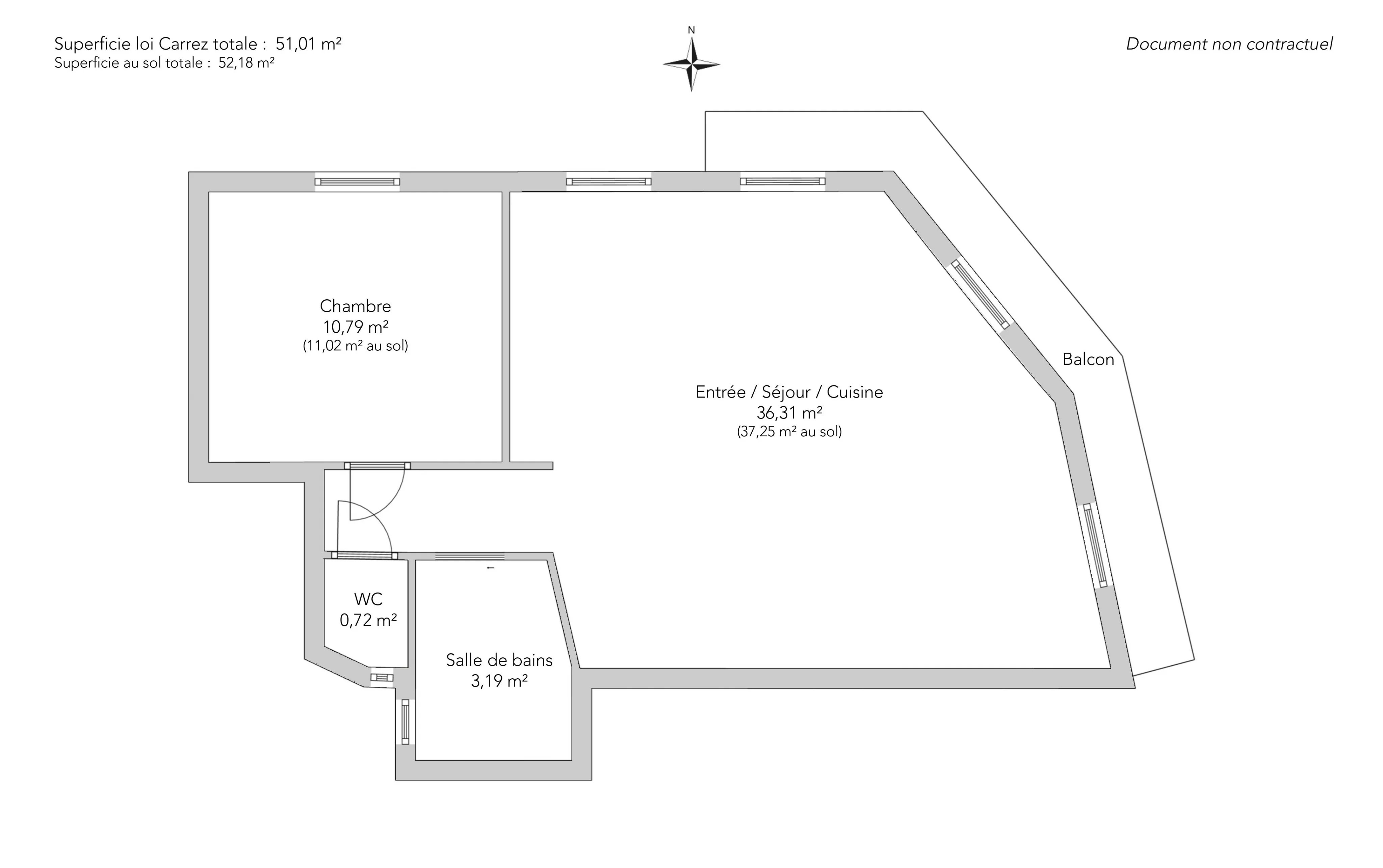 Located on the second floor of an old building, this corner apartment has been completely renovated with beautiful materials and has a surface area of 51.01sqm loi Carrez (56.09sqm on the ground). It comprises an entrance hall, a beautiful 37m² living room with four windows leading to a 3.91m² balcony, a fitted and equipped kitchen, a bedroom with large dressing room, a shower room and separate toilet. The old-world charm has been preserved (parquet flooring, moldings, fireplace).