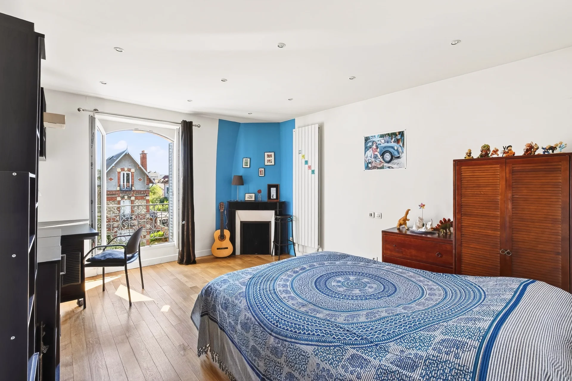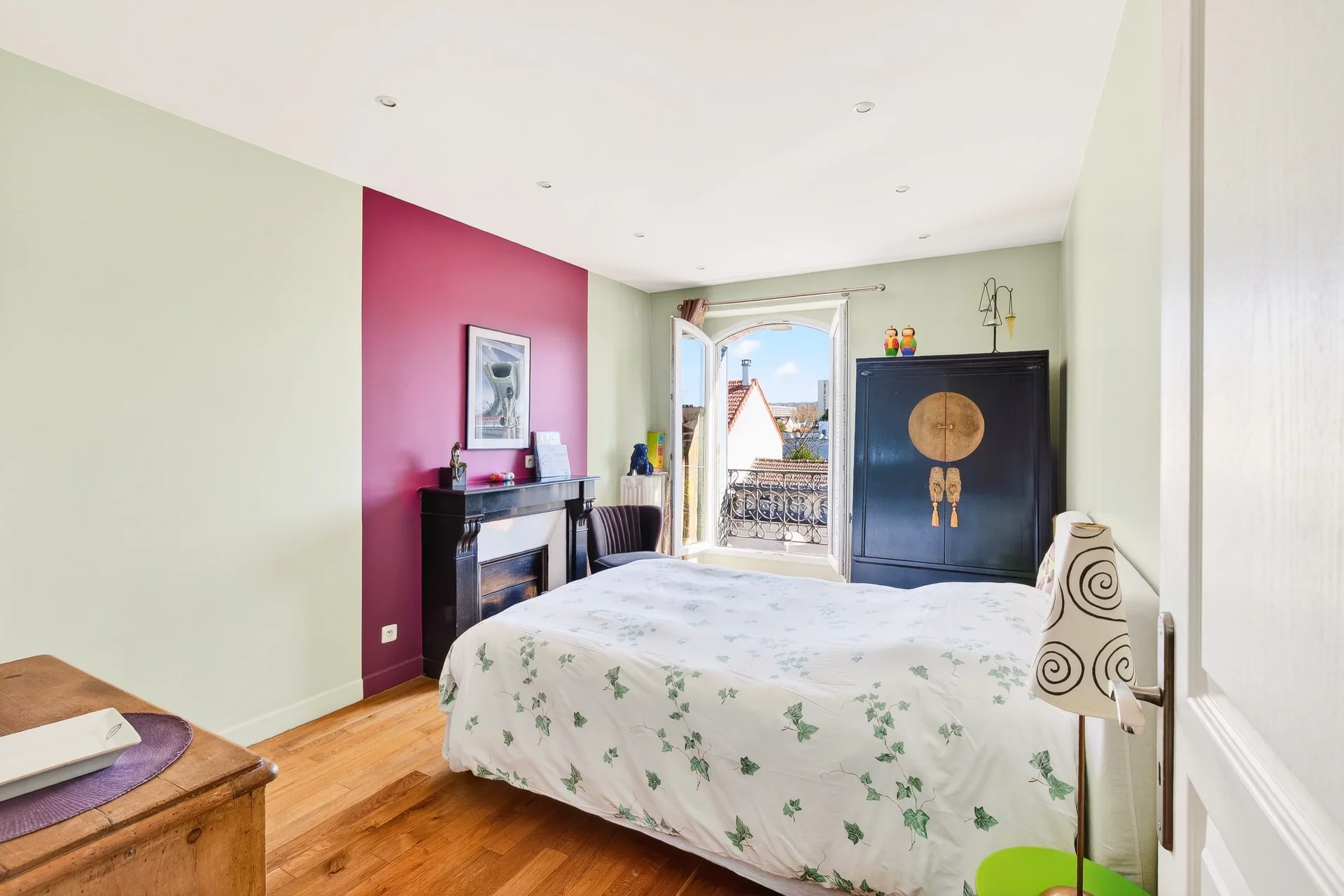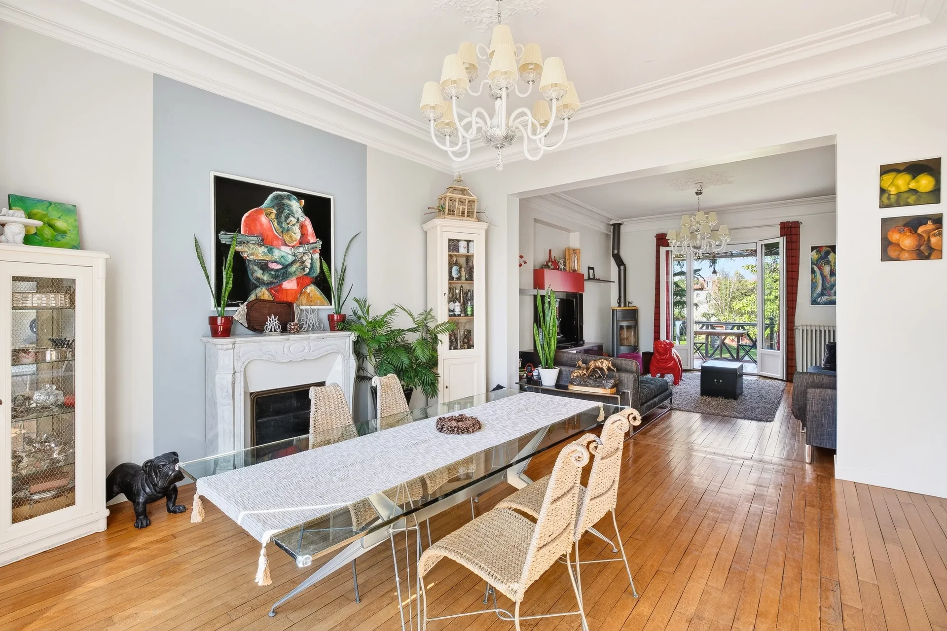 The house features a harmonious family layout. From the entrance, period elements – oak parquet flooring, high ceilings, fireplaces – interact with the comfort of careful renovation.