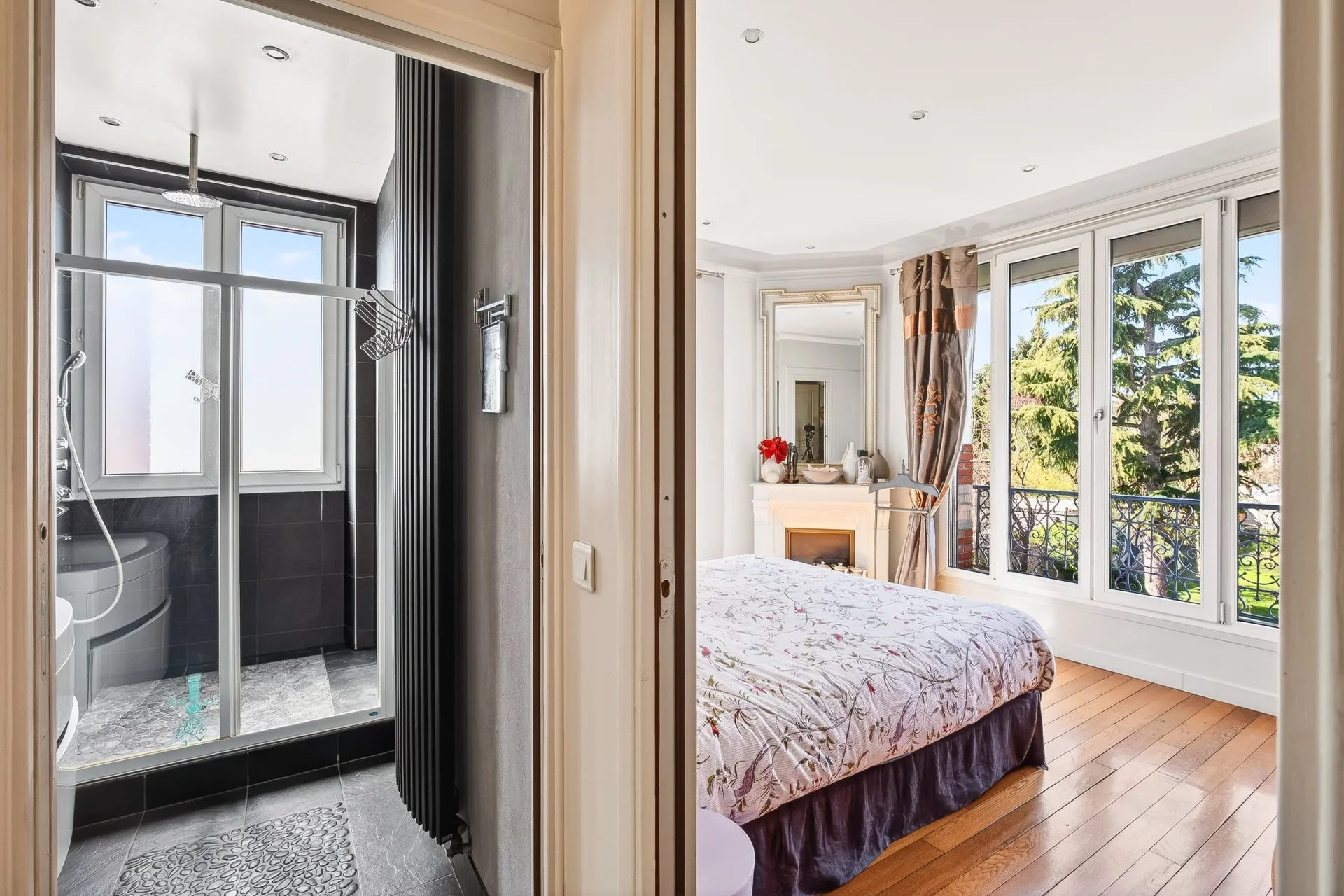 Ideally located in a quiet and sought-after street in downtown Nanterre, just a five-minute walk from the RER, shops, and schools, this elegant late 19th-century mansion charms with its preserved character and generous volumes.