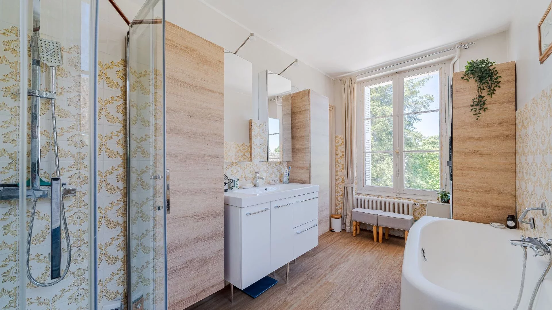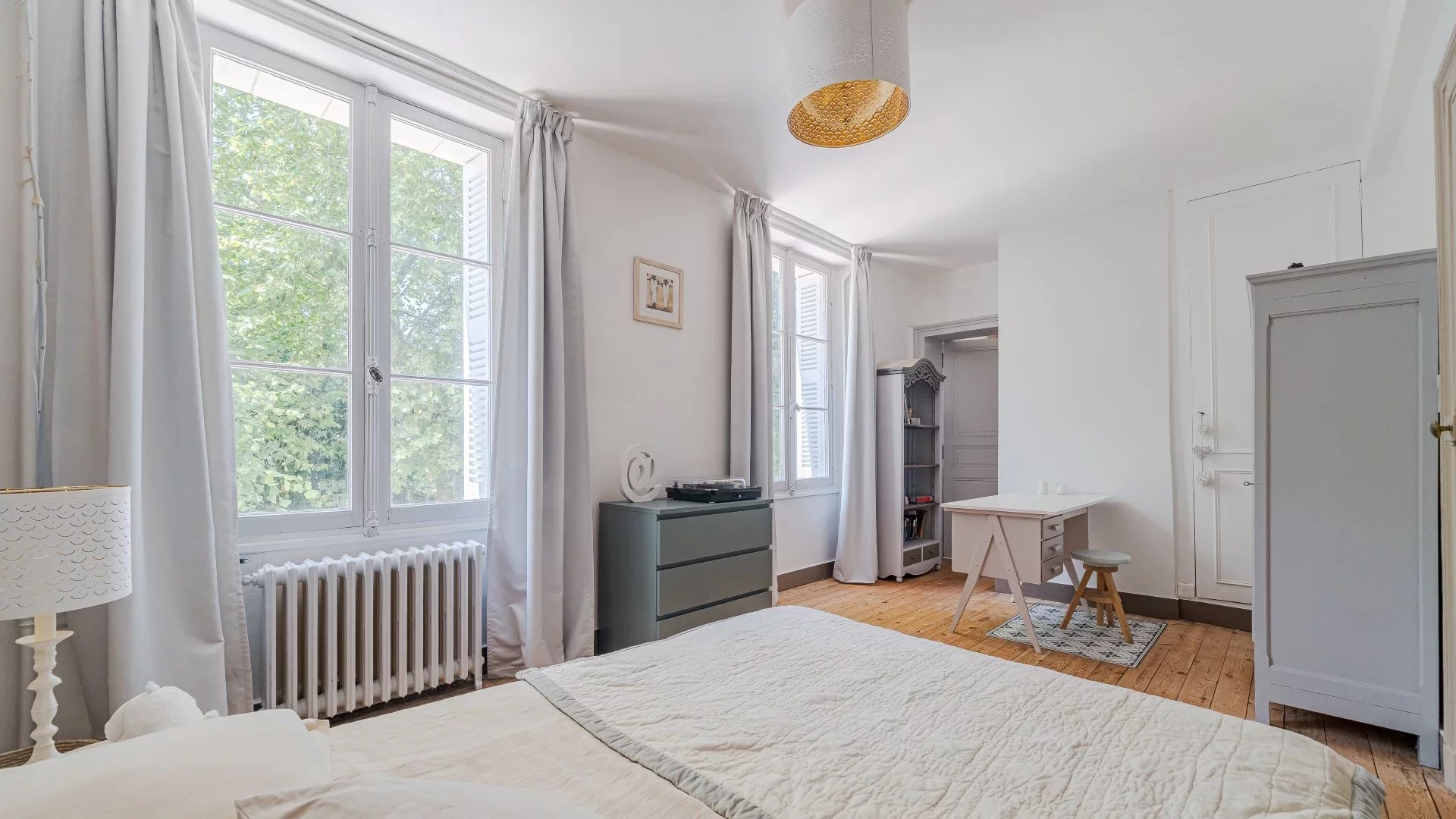 Nestled in a green setting in the heart of a charming village in Touraine, beautiful property of approximately 400sqm for sale. It comprises on the ground floor an entrance hall, a double reception room, a spacious dining room, an office, a laundry room, a workshop and a large family kitchen. The first floor offers four spacious and very bright bedrooms as well as two shower rooms and a bathroom. The top floor partially to be renovated offers two connecting bedrooms and an attic remaining to be fitted out. A barn of approximately 165sqm can accommodate two vehicles and includes a workshop, a cold room, the pellet boiler and a large attic. A guest house in excellent condition that can serve as a gîte has a kitchen, a living room, two beds and a shower room. A huge cellar 100m long is accessible from the garden. A heated swimming pool completes this property located in a quiet area in close proximity to local shops and a railway station.