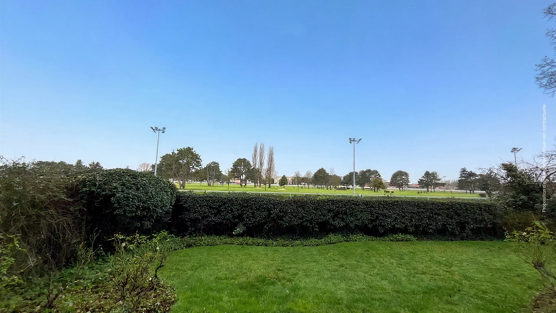The apartment has an overhead parking space and a closed garage. A private garden, a true haven of peace, offers an exceptional, unobstructed view of the Marcq-en-Barœul racecourse.