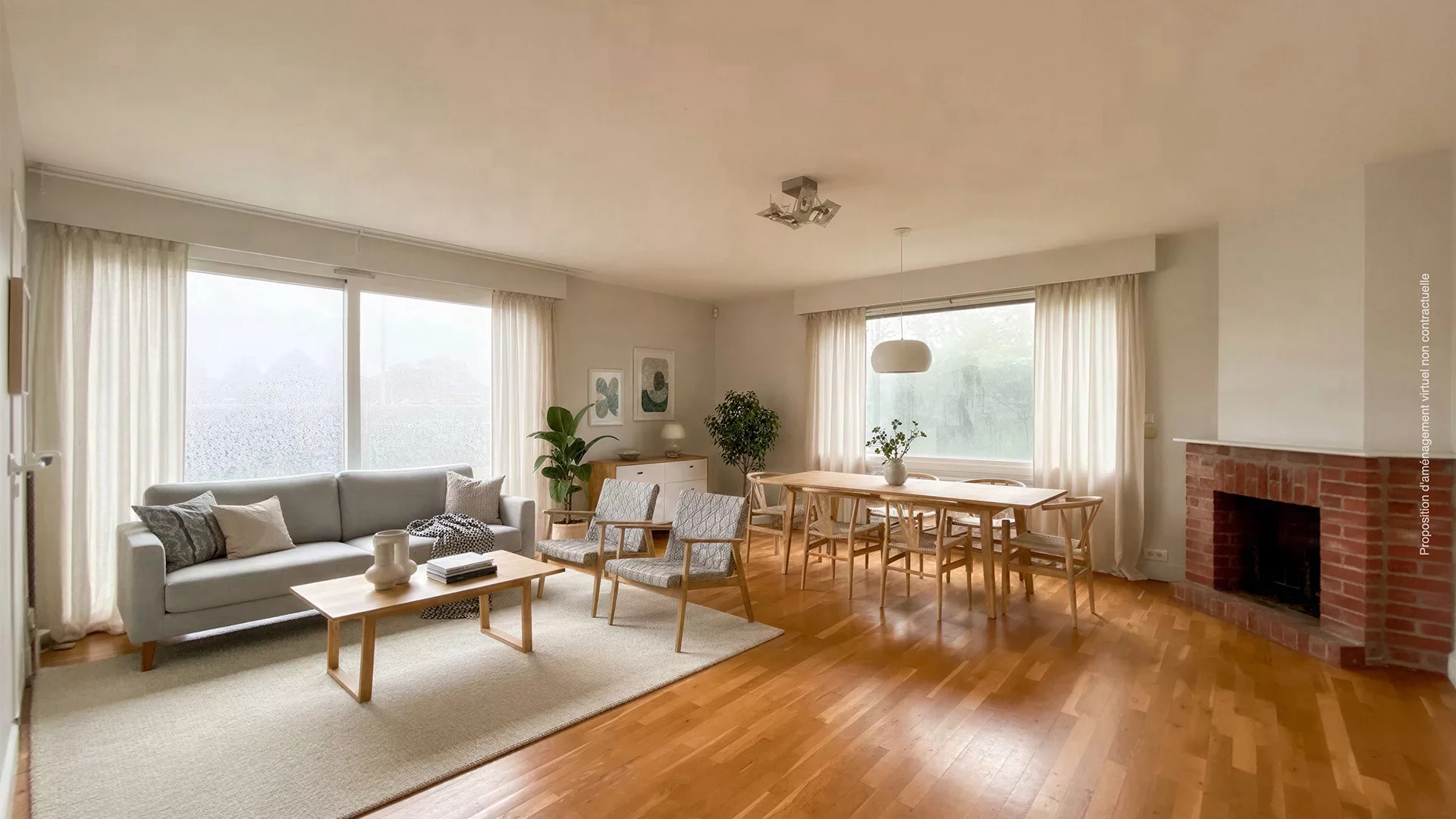 The entrance hall leads to a vast, bright 32m² living room with an open fireplace, inviting you into a convivial atmosphere. The large eat-in kitchen, extended by a laundry room, also benefits from large windows letting in plenty of natural light.