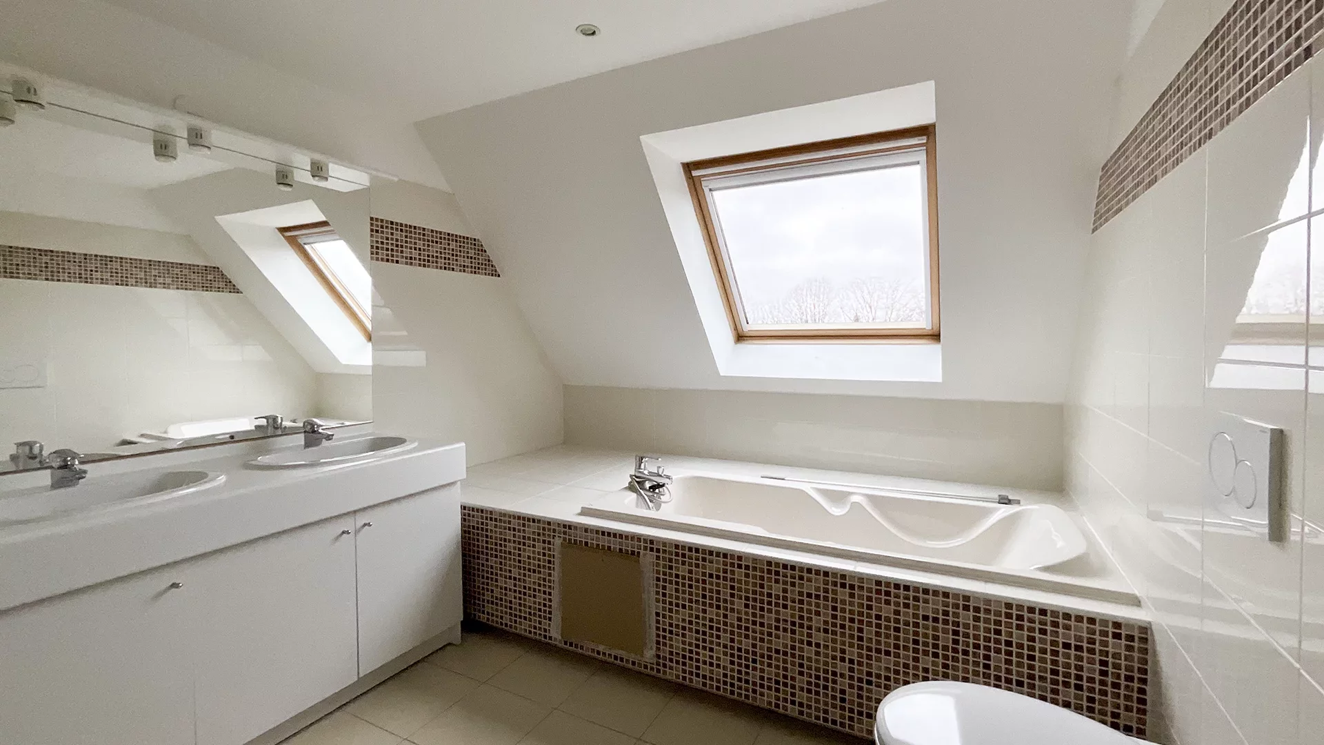 From the entrance, a private landing opens onto a remarkable 57m² double living room, enhanced by a fireplace and extended by two terraces, one of which faces southwest. The reception area harmoniously integrates a dining room opening onto the living room, creating a fluid, convivial whole. The separate, fully-equipped kitchen features a pleasant dining area, ideal for everyday meals.