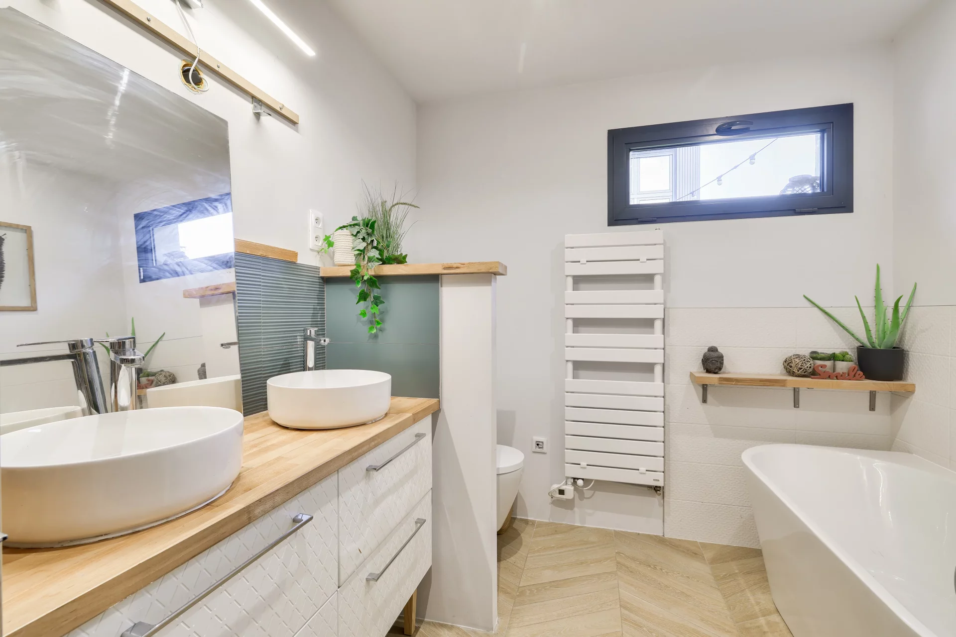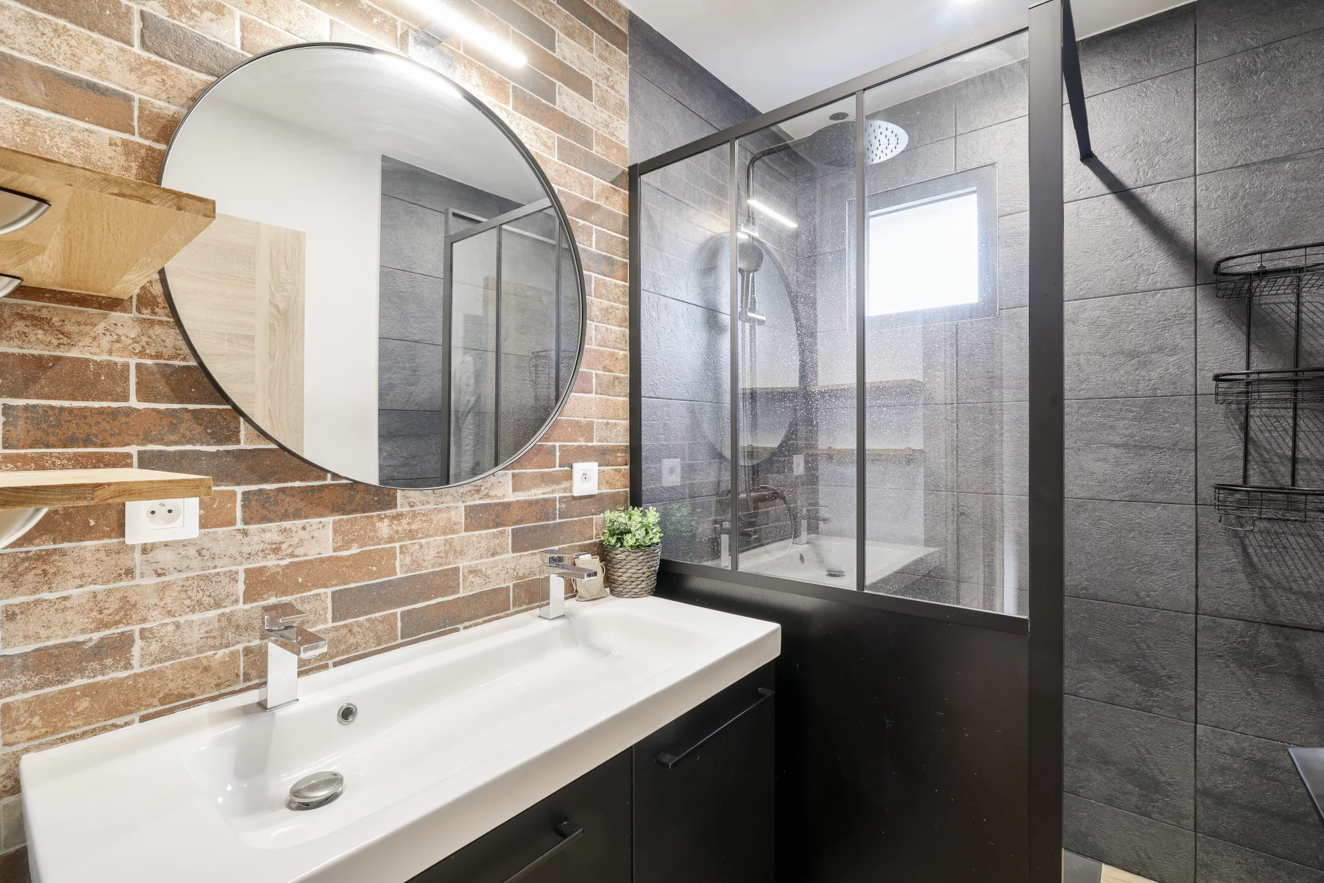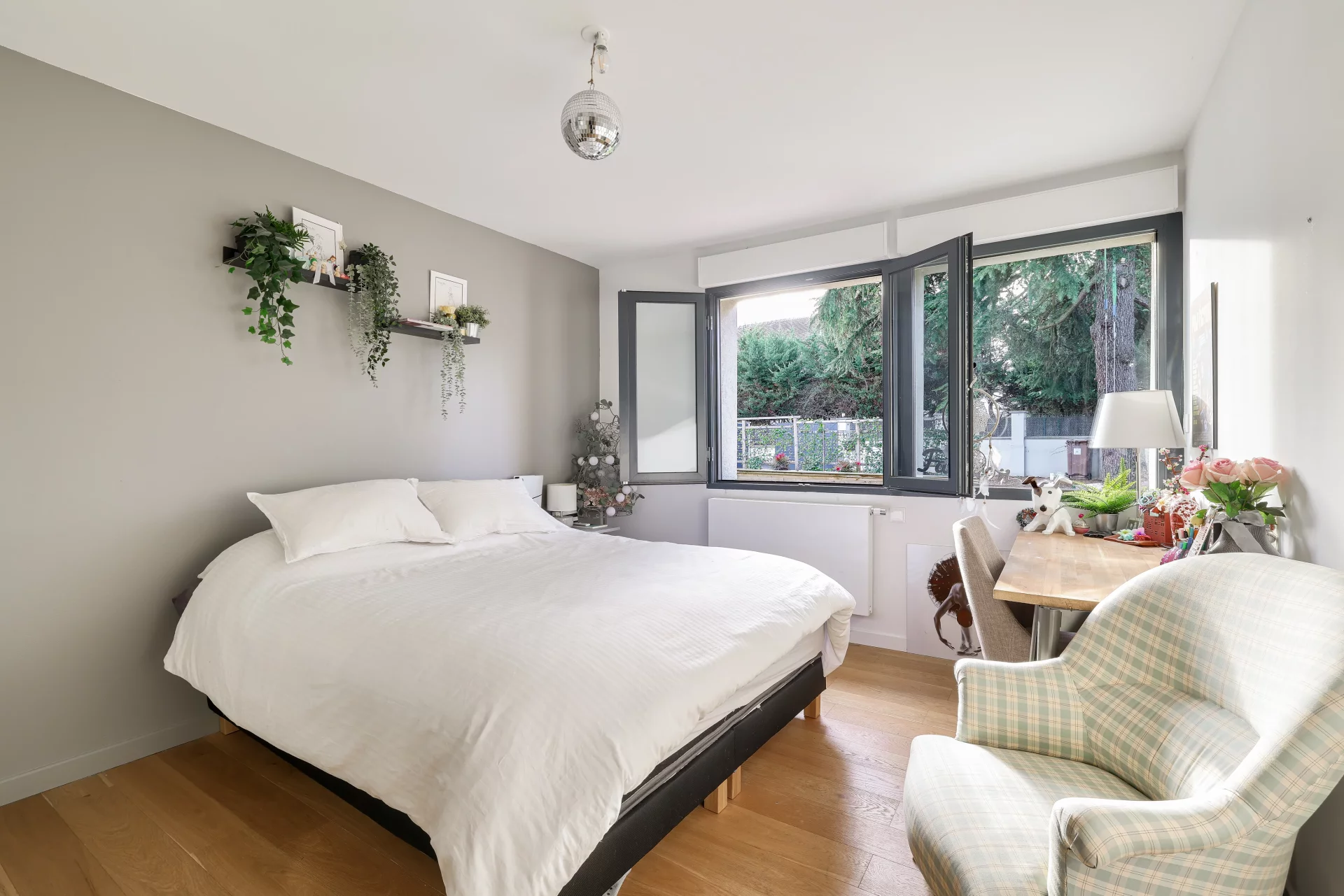 Set on an 874sqm wooded plot, it offers generous, perfectly organized outdoor spaces, including parking at the entrance, a garden for children, a patio-style lawn and a vast garden directly adjoining the living room.
