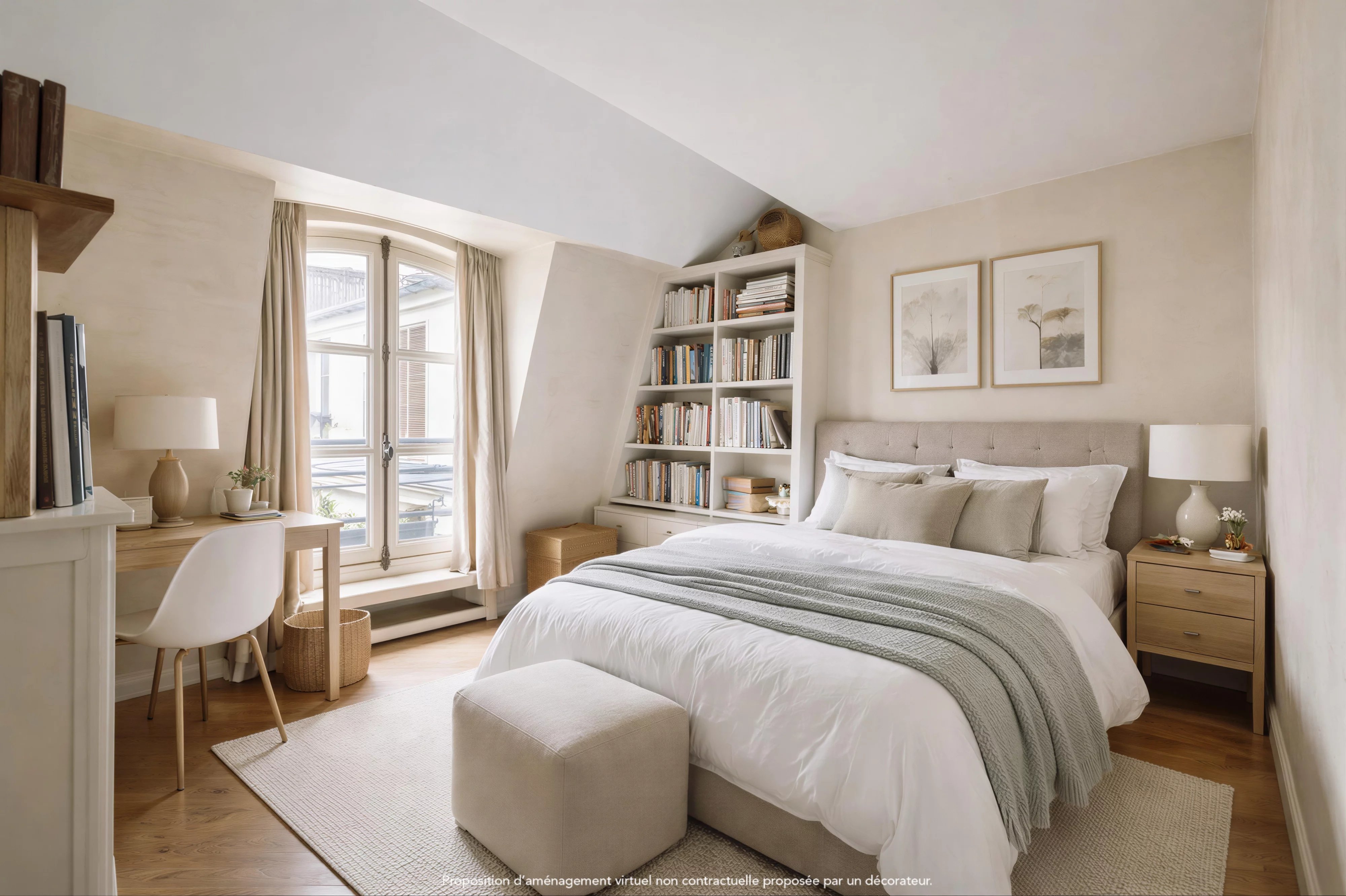 Facing Place de Furstemberg, this 140.14sqm loi Carrez duplex apartment occupies the top two floors of an old building with elevator and enjoys an exceptional location.