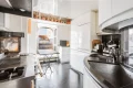 The apartment has an open-plan layout and plenty of natural light thanks to its many windows. It boasts unobstructed views and plenty of built-in storage space.