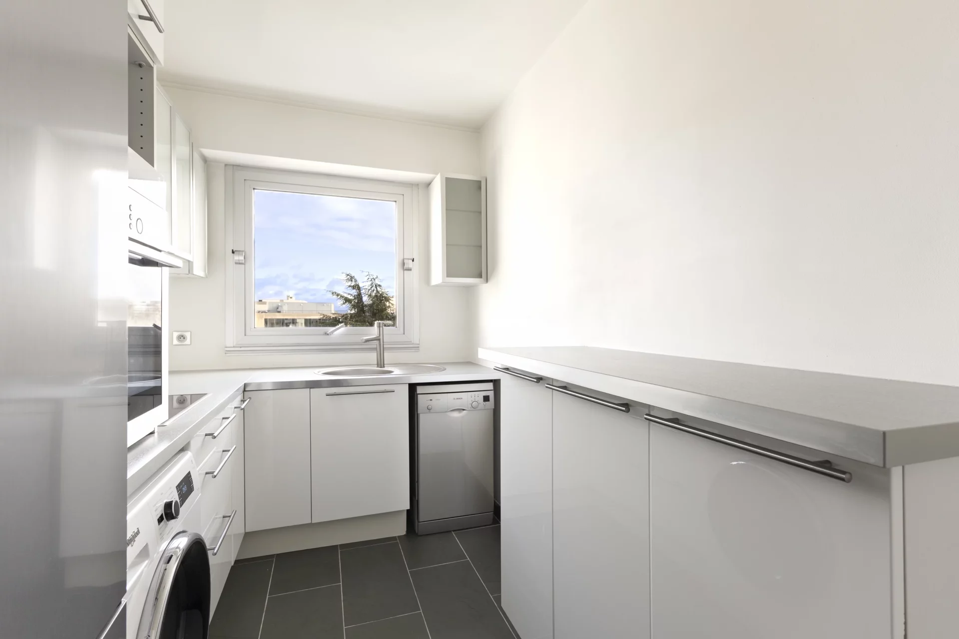 Île de la Jatte, at the foot of the shops and the banks of the Seine, in a luxury residence with janitor, very bright, this 45.39sqm apartment, in perfect condition, is located on the top floor with no overlooking.