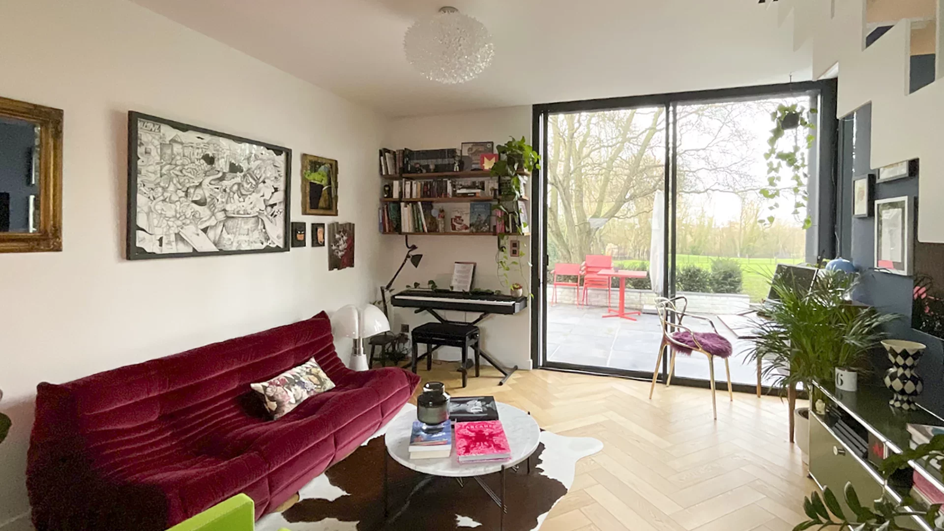 Nestled in a secluded, private setting, the house enjoys absolute peace and quiet and spectacular views over the Pévèle countryside. Right from the entrance, the tone is set by the controlled volumes and fluid circulation leading naturally to the reception areas.
