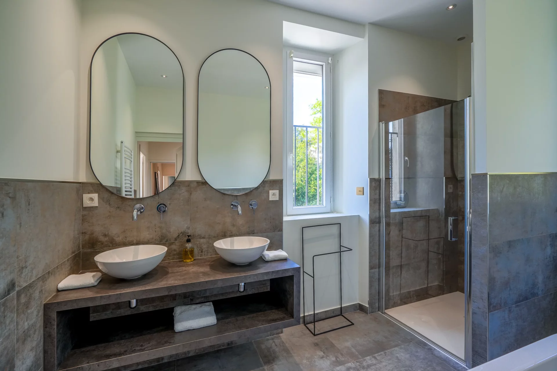 Two independent guest cottages of 49 and 57 square metres of habitable space respectively constitute a remarkable heritage asset. Each comprises on the ground floor a handsome living area with fitted kitchen, shower room and toilets. On the first floor, a mezzanine providing two sleeping places and a bedroom offer accommodation capacity for four persons per cottage. Each cottage benefits from a private garden preserving the privacy of the main residence.